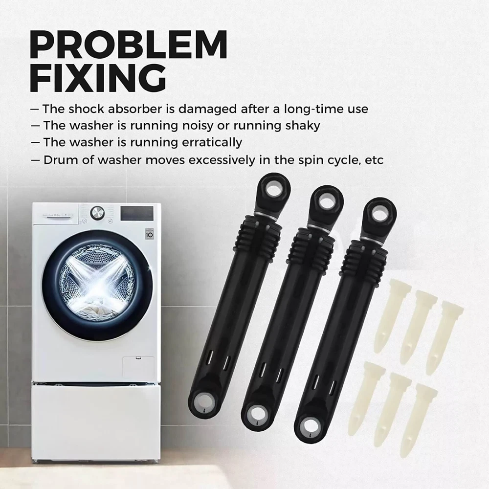Product Description Washer Shock Absorber Replacement Part For LG Washing Machine 383EER3001G 3Pcs Features: Easy installation and replacement: Designed with user convenience in mind, the shock absorber rod replacement parts feature standardized sizes and a simple installation structure, enabling home users to effortlessly complete the task without professional skills. This significantly shortens maintenance time and reduces installation difficulty. High durability: Crafted from high-strength, high-elasticity materials, the premium shock rod replacement parts withstand intense vibrations and long-term loads during washing machine operation, effectively prolonging the service life. This durability ensures a stable working condition for an extended period, minimizing inconvenience and costs associated with frequent replacements. Improved shock absorption: In comparison to aging or damaged shock rods, the new replacement parts excel at absorbing and dispersing vibrations and noise generated during washing machine operation. This safeguards internal components from damage while diminishing laundry-related noise, fostering a quieter, more comfortable living environment. Enhanced stability and safety: Maintaining the shock absorber rod's optimal condition is crucial for the washing machine's overall stability. Replacing worn-out shock rods significantly enhances the machine's balance, minimizes shaking and displacement, and prevents it from tipping or moving at high speeds. This, in turn, strengthens usage safety and safeguards the wellbeing of family members and the home environment. Specifications: OE Reference: 383EER3001G, ACV72909503, ACV72909501 Color: Black Quantity: 3pcs Replace: 383EER3001G, 383EER3001J, 4901ER2003A, 383EER3001F, 383EER3001H, 1461630, 383EER3001K, AH3522311, EA3522311, PS35222311, AP4437743, 1335104, AP5226074, PS3583320, Compatible: For LG Package Included: 3 x Washer Shock Absorbers 6 x Mounting Pins Shipping Returns Contact Us Payment 1. Items sent from US warehouse. 2.Receiving time = Processing time + Shipping time 3. Processing Time: Around 1-2 business Days 4. Shipping Time: 3-5 business day it may have a little delay during some holiday (such as Christmas),any problem ,please feel free to contact 1. 30 days warranty from the purchased date. Please contact us via email before returning the defective item. 2.Our warranty does not extended to any product that are physically damaged or that are not under normal operating conditions as result of misuse or improper installation on the buyer/user's part. 3.Return items should include the original packaging and all accessories. buyers MUST contact us for the returning address. 4.In all cases, buyers pay shipping fees at their own cost to return products for exchange or refund. We will be responsible for the postage of replacements. Refund will be made upon receipt of the returned item. Pls contact us if you have any problems,we will try our best to solve for you We accept all verified payment from eBay. Shipping 1. Items sent from US warehouse. 2.Receiving time = Processing time + Shipping time 3. Processing Time: Around 1-2 business Days 4. Shipping Time: 3-5 business day it may have a little delay during some holiday (such as Christmas),any problem ,please feel free to contact Returns 1. 30 days warranty from the purchased date. Please contact us via email before returning the defective item. 2.Our warranty does not extended to any product that are physically damaged or that are not under normal operating conditions as result of misuse or improper installation on the buyer/user's part. 3.Return items should include the original packaging and all accessories. buyers MUST contact us for the returning address. 4.In all cases, buyers pay shipping fees at their own cost to return products for exchange or refund. We will be responsible for the postage of replacements. Refund will be made upon receipt of the returned item. Contact Us Pls contact us if you have any problems,we will try our best to solve for you Payment We accept all verified payment from eBay. You may also like Watch Crystal Glass Sapphire Bubble Magnifier Calendar Lens Small Date Window 10.66 USD Quick Genuine Leather Band Strap For Garmin Fenix 7 7X 6 6X 7S 6S Pro 5 5X Plus 14.29 USD 3.49 USD Time Relay / Timer Control Board Power For Arcade Vending Machine Digital 16.49 USD 3.49 USD Green Low-Noise Quick-Release Propellers 8331F For DJI Mavic PRO Platinum Drone 14.95 USD 2 Pac Watch Hand Remover Presto Tool Repair Plunger Type Hairspring Collect 13.08 USD 24Pack Waterproof Watch Crown Assortment Replacement Watchmaker Repair Parts Set 18.36 USD powered by