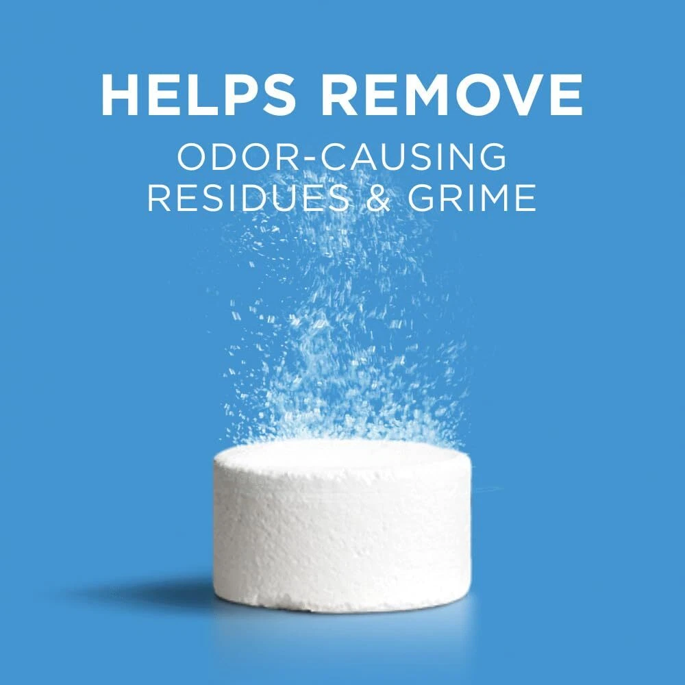 Product Description ® washing machine cleaner deep cleans even where you can’t see to help remove odor-causing residues and build-up that can form in machines over time. Specially formulated to dissolve slowly throughout the entire wash cycle, ® washer cleaner is an easy and effective way to clean your washing machine pump and valve, behind the basket and drum, wash tub, agitator or filter, and drain hose. Just drop one tablet in an empty washer and run on a normal hot or Clean Washer cycle for a fresh, clean appliance. Made with U.S. EPA Safer Choice certified ingredients, the time-release tablets are septic safe and can be used with top or front load washing machines, including HE. Use monthly for optimal results. From the Manufacturer Washer Cleaner removes and prevents odor-causing residue that can occur in all washers. While bleach only kills odor-causing bacteria leaving behind the detergent residue, Washer Cleaner uses surfactant chemistry to remove the root problem. cleaner is a formulated, slow-dissolve, foaming tablet that gets under residue, breaks it up, and washes it away leaving the washer smelling fresh and clean. Simply place one tablet in the wash basket (without clothes) and run a Normal Cycle (hot option) or Clean Washer Cycle. brand is safe on septic tanks, and safe for all washer components. Use once a month to keep your machine fresher and cleaner. Package includes six tablets. Designed to penetrate, dissolve and remove odor-causing residue that can occur in all washing machines Specially formulated tablet dissolves slowly, lasting throughout the entire wash cycle and breaking up residue better than bleach Safe to use with Front Load Washing Machines and Top Load Washing Machines - High Efficiency (HE) and Conventional Washers Use once a month to keep your machine fresher and cleaner
