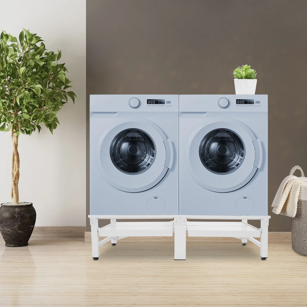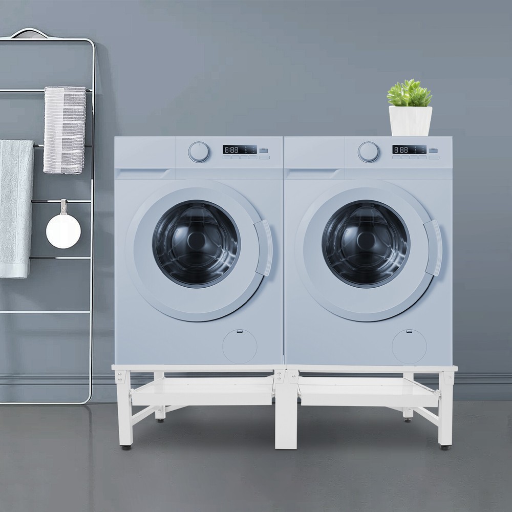 Washing Machine Pedestal Washer and Dryer Stand Adjustable Washing Machine Stand Description Placing a washing machine or refrigerator directly on the floor may cause rust at the bottom due to accumulated water and make it difficult to clean the bottom area. Our washing machine stand is a great solution to these worries. With its sturdy structure and strong load-bearing capacity, it can lift your appliances well. It can hold two washing machines or dryers at the same time, meeting your usage needs. With this product, you can make your home life easier and more convenient. Key Features Build to Last : Premium stainless steel, EVA, and exquisite painting process make the product rust-resistant, scratch-resistant , and sturdy, ensuring long-term use. Strong Load-bearing Capacity : The thick materials, stable rectangular construction, and sturdy support tubes allow this product to hold up to 330.69 lbs, so you can rest assured that it will hold a heavy-duty refrigerator, washing machine, and more. Great Home Helper : This stand can hold two washing machines or dryers at the same time, helping raise them to a more suitable working height, so you don't have to bend down too much to remove the clothes from it. It also allows for easy cleaning of the bottom of the machine, preventing electrical appliances from getting damp and rusting. Thoughtful Design: The two shelves pull out smoothly and quietly and can hold up to 8.82 lbs of weight, which can be used to place laundry baskets and other items for added storage capacity. Modern Appearance : The classic white color and smooth lines give this stand a simple and modern appearance, making it suitable for most usage scenarios. Easy to Assemble : The simple structure, complete accessories, and a detailed English diagram allow you to quickly finish the installation and start using it. Labor-saving Cleaning: With its simple construction and smooth surface, you can simply rinse it with water or wipe off surface dust with a damp rag (not included). Protective Package: To prevent the product from being damaged and bumped during transportation, we packed it with foam, bubble bags, and paper corner protectors to protect your products to the maximum extent possible. Good Customer Service: We stand behind all our guests and look forward to assisting you with your purchase. It is our pleasure to answer your confusion and questions. The end of the story between us is not "we sell and you buy". Details Shock-absorbing Mats: They can effectively alleviate the vibration generated by the washing machine during dehydration and protect them from scratches. Raised Edges: The raised edges can prevent slipping and enhance stability during use. Adjustable Feet: The foot pads can be fine-tuned in height to accommodate uneven floors and they can reduce the movement that occurs when the washing machine is spinning. Application Its universal size is compatible with most washing machines and dryers and can be used in homes, restaurants, dormitories, dry cleaners, and laundries to lift and secure refrigerators, washers, dryers, freezers, planters, cabinets, or other furniture. Specifications Color: White Material: Stainless Steel, EVA Process: Painting Shape: Rectangle Style: Modern Assembly Required: Yes Mounting Type: Floor Standing Load-bearing Capacity: 150kg/330.69 lbs Bottom Shelves Bearing Capacity: 4kg/8.82 lbs Each Stand Length: 53.5cm/21.06in Product Size: 124*61.5*34cm/48.82*24.21*13.39in Package Size: 71.5*33*16cm/28.15*12.99*6.3in Gross Weight: 15.7kg/34.61 lbs Net Weight: 14.92kg/32.89 lbs Package Included 1* Washing Machine Stand 4* Foot Pads 1* English Diagram All Accessories for Installation Notes Please check the size carefully before ordering. It is not recommended to adjust the bottom foot pad too high, otherwise it will affect the load-bearing capacity. Please allow the slight color difference caused by the shooting light and the 1-3 cm error due to manual measurement, and make sure you do not mind before ordering. Payment Delivery details Terms of sales About us Contact us Payment We accept ebay payment 。 Fees such as import duties, taxes are not included in the item price or shipping costs. These charges are the buyer's responsibility. Delivery details Shipping: 2-9 working days to: USA Terms of sales We maintain high standards of excellence and strive for hundred percent customer satisfaction. Feedback is very important to us. We hope that you contact us immediately before you give neutral or negative feedback, so that we can address your concerns. It is impossible to address issues if we do not know about them! About us Your satis faction is our ultimate goal. We work hard to earn your trust and future business. Our certified technicians have tested each item before shipping. The unit comes with 1 year limited warranty on all manufacturing defects. a) If you receive a defective item, you may return it or ask for a discount. Please contact us within 14 days after you receive the package. b) What you returned must be intact and in its original packaging as re? u. Customer is responsible for shipping costs of the returned item. c) We will cover the cost of shipping back t with the shipping rate indicated in the registration page. We will send you a new unit or refund the full payment you paid. Thank you. Contact us Business Hour Business Hour: Monday To Friday: 8:30 AM to 5:00 PM (Beijing China time) Due to time zones, our reply to your questions may not be immediately. But within above working time, we will reply your email within 24 hours. If it's non-workdays, please kindly be patient and wait till Monday. Please contact us with ebay message. Please feel free to contact us if you have any questions. Monday To Friday: 8:30 AM to 5:00 PM (Beijing China time) Due to time zones, our reply to your questions may not be immediately. But within above working time, we will reply your email within 24 hours. If it's non-workdays, please kindly be patient and w