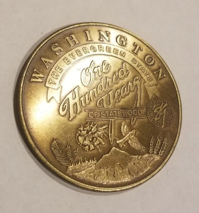 Washington State Centennial Statehood Medal 1889-1989 So Called Dollar Token