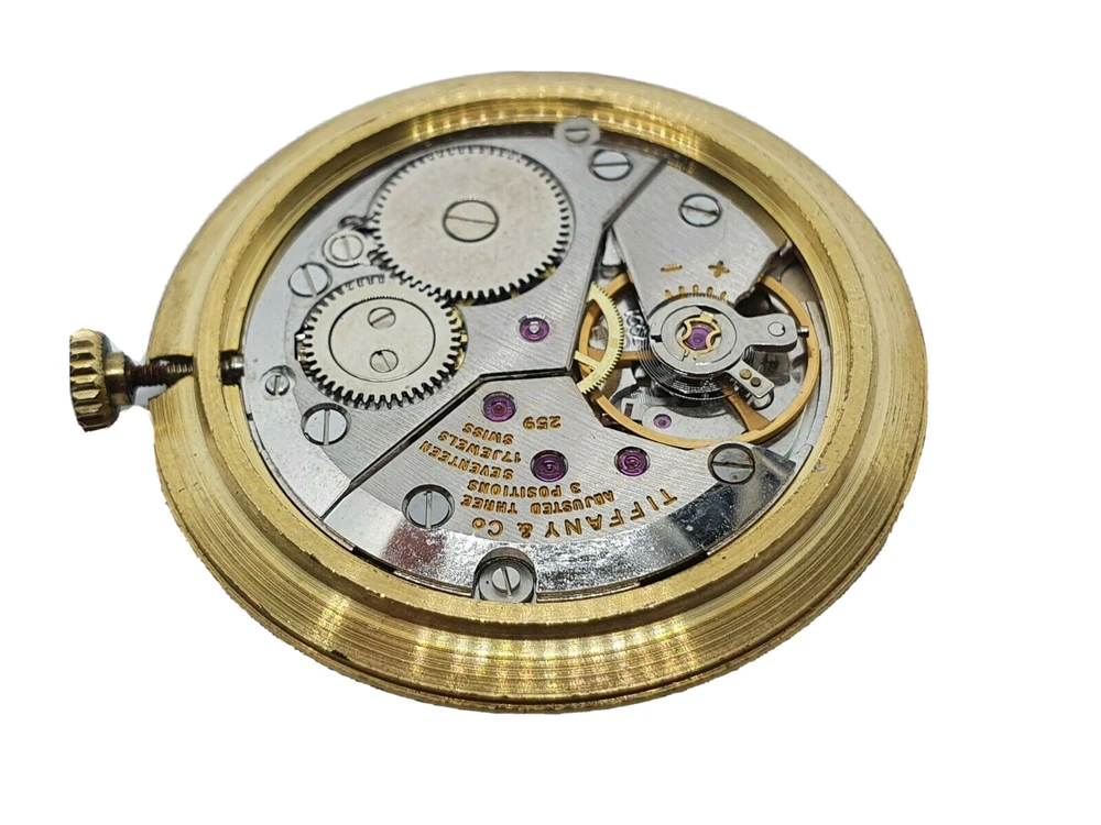 Vintage watch movement TIFFANY & CO Movement made by Peseux cal 7001 movement winds and runs service recommended due its age Aged dial some rust on hand / possible hour wheel or some parts on dial side Comes as pictured