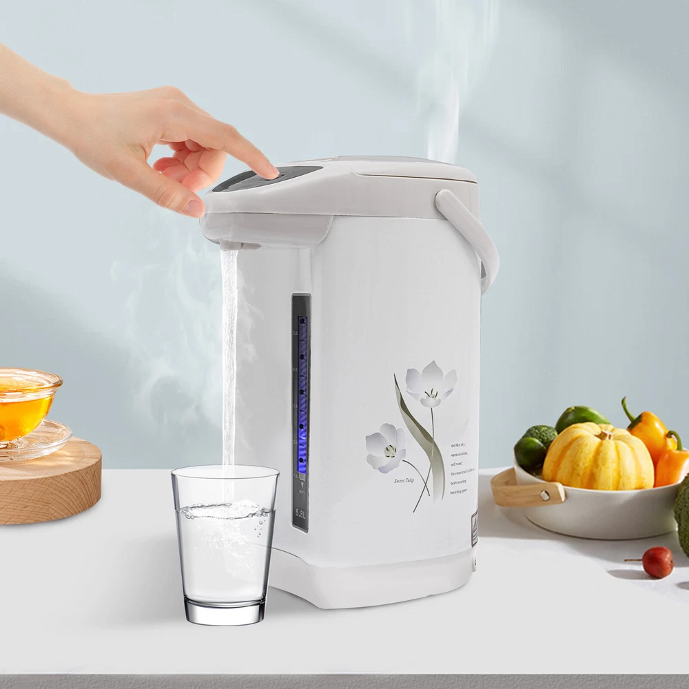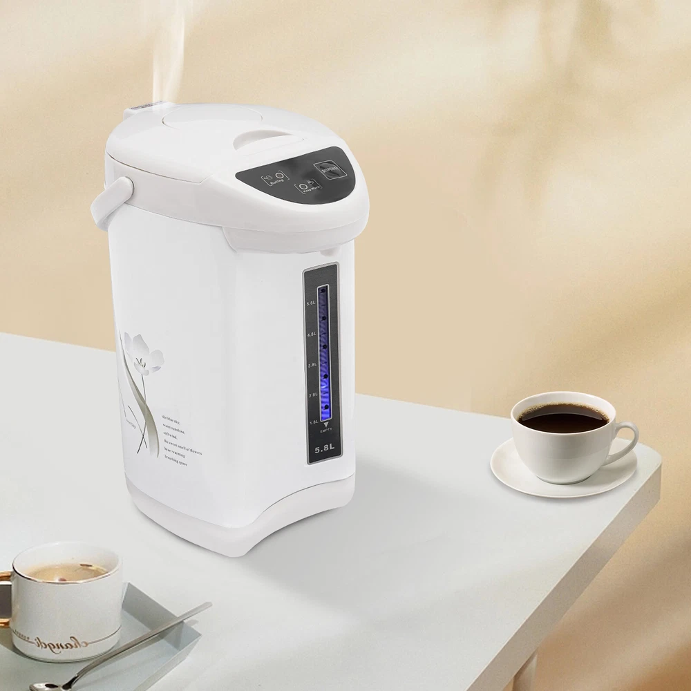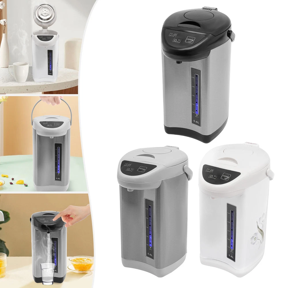 Description This electric kettle features fast heating, high safety and reliability, and multiple protection for your hot water needs. It has a large capacity and a stylish appearance, making it ideal for modern families. In addition, it is made of high-quality materials, sturdy and durable. If you need a practical and durable electric kettle, it is the right choice for you.Details Steam Holes: They help the product vent in time and let you know if the water is boiling. Work Indicator Light: The heating light and insulation light make it easy for you to see the working status of the kettle at a glance. 360 ° Rotating Chassis: It allows for convenient use in any direction or angle. Detachable Power Cable: The 3.94ft power cord reduces usage restrictions and further ensures safety. Visual Water Level Window: It enables you to monitor the water level at any time, effectively avoiding the situation of lack of water. Its glow-in-the-dark feature allows you to drink at night without having to turn on the light. Portable Carrying Handle: It allows you to easily reach and move the kettle.