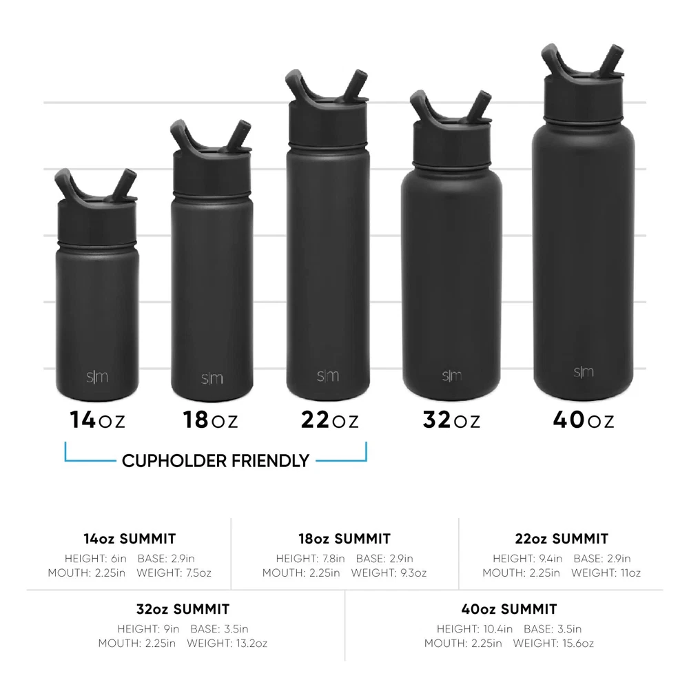 The Summit Water Bottle with Straw Lid and Chug lid comes with two different lid options to best fit your daily needs. The Straw Lid and Chug lids are both leak-proof and have a transport handle to keep you hydrated on the go. The bottle is made from double walled, vacuum insulated 18/8 stainless steel. Double Wall Insulation: Keeps beverages at ideal temperatures for hours BPA-Free: Comes with a BPA-free Straw Lid and Chug Lid that is dishwasher safe on the top rack Leakproof: Offers a tight seal to prevent spills and leaks; Not recommended for hot or carbonated beverages Personalize: 32oz Summit inlcudes straw and chug lid for drinking preference Limited Lifetime Warranty & Patent Pending
