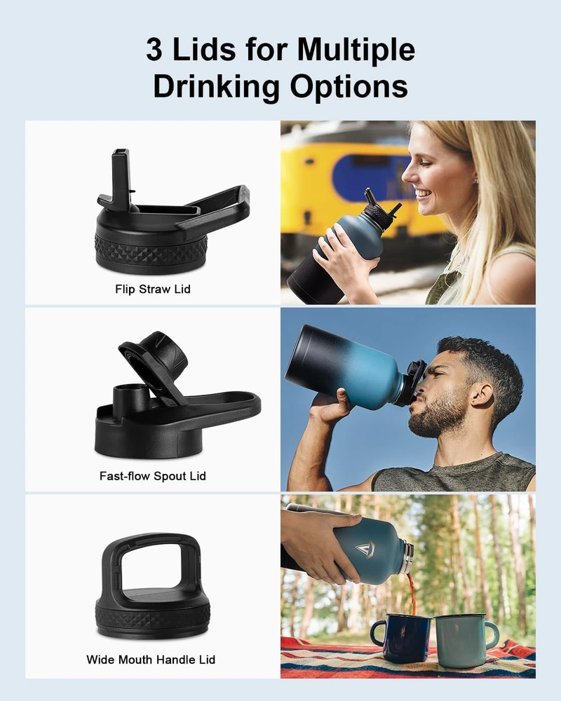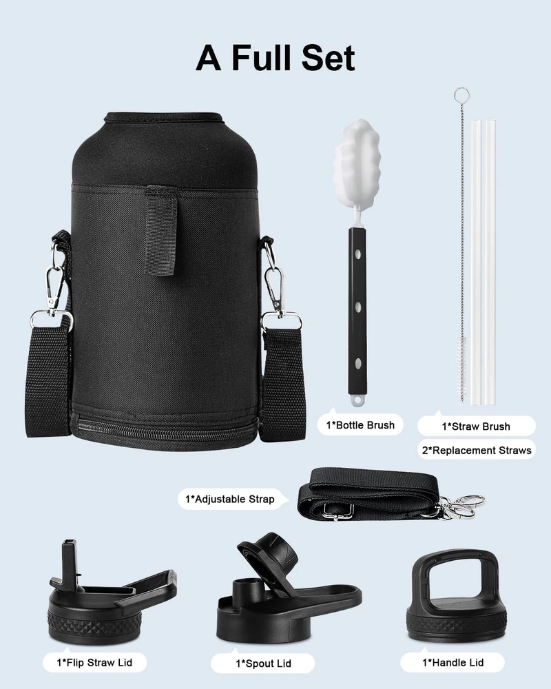 Store New Arrivals Add to Favorite View Feedback Contact Water Bottles 64 Oz, Insulated Water Bottle with Straw, Double Walled Vacuum Stainless Steel Water Bottle, Leak Proof Large Water Bottle with 3 Lids & Brush, Sport Water Bottle for Gym Camping Description Age Range Description Baby, Kid Capacity 4 Pounds Number of Items 1 Material Type Stainless Steel Is Oven Safe No Theme Sport With Lid Yes Item Dimensions W x H 4.88"W x 9.92"H Is the item dishwasher safe? No Cap Type Straw Cap Item Weight 2.7 Pounds Special Features Bpa-free Special Feature Bpa-free Color Indigo Black Recommended Uses For Product Water, Tea, Coffee Is the item microwaveable? No Included Components 64 oz Insulated Water Bottle, 1 x Handle Lid, 1 x Flip Straw Lid, 1 x Spout Lid, 2 x Replacement Straws Base Diameter 2.16 Inches Product Care Instructions Hand Wash Only Size 64 Ounces Premium Insulated Bottle: Made of 18/8 Food-grade Stainless Steel that’s non-toxic, BPA-free, and odorless, these vacuum insulated bottles keep beverages hot for up to 48 hours and cold 24 hours. Matte coating keeps the exterior nice and dry against sweat, moist, and slip. Functional Sports Bottle: These water bottle comes with 3 useful lids. Flip straw lid is for hands-free sipping when driving or working without blocking your view. Fast-flow spout lid allows spill-proof swig for instant refreshment after sports. Wide mouth handle lid makes ice cubes and fruits filling easily accessible. 3 lids, full flexibility! Wide Mouth Jug: 2.16 inches wide mouth allows fast fill-up and 64oz capacity holds enough fluid for a whole-day’s refreshment. Each lid is fitted with a seal ring to ensure 100% leak- and spill-proof, keeping beverages fresh and intact all day without transfer of flavor A Full Pack: You’ll get 1 x 64oz Sports Bottle, 3 x Lids, 1 x Portable Pouch, 2 x Detachable Straws, 1 x Straw Brush, 1 x Bottle Brush, 1 x Present Box. Different lids add possibilities to use anywhere at gyms, concerts, picnics, camps. Clean easy with the included brushes to get rid of coffee, tea, and milk. The present box package makes it a sweet present for families and friends Reassuring Customer Care: Buy 1 bottle get 8 accessories and 30 day service. If you are not 100% happy with our product, welcome to and we will respond within 24 hours. Tips for use: Hand wash only, do not put in microwave or freezer, keep away from babies and kids when dealing with hot beverages Product Description 1 Flip Straw Lid 2 Spout Lid 3 Handle Lid Adjustable Strap The adjustable strap allows for slinging over the shoulder and frees your hands, easy to take anywhere. Portable Handle The portable handle is high-quality and sturdy, pick and go. Straws and Straw Brush Straws enable sipping and straw brush easily removes stubborn stains from the inside of the straw to keep your sipping safe. Bottle Brush The bottle brush enables thorough cleaning on the inside and keeps the bottle always clean and fresh. Topre 128oz 1 Gallon Stainless Steel Water Bottle Topre's ambition is just like your attitude to sport, keeping moving towards the TOP and never stopping striving for EXCELLENCE! Topre Insulated water bottle Customer Reviews 4.6 out of 5 stars 254 4.7 out of 5 stars 21 4.6 out of 5 stars 254 4.7 out of 5 stars 138 4.6 out of 5 stars 254 4.6 out of 5 stars 254 Capacity 40oz 64oz 64oz 64oz 64oz 64oz Color Black White Blue-Pink Gradient Indigo Black Forest Green Black Portable Pouch ✔ ✔ ✔ ✔ ✔ ✔ Food Grade Stainless Steel ✔ ✔ ✔ ✔ ✔ ✔ Keep Cold for Up to 48 Hours ✔ ✔ ✔ ✔ ✔ ✔ Straw Lid ✔ ✔ ✔ ✔ ✔ ✔ Auto Spout Lid ✔ ✔ ✔ ✔ ✔ ✔ ABOUT US We offer the best prices around on high quality products. Our E-store includes media such as books, movies, music and games while offering electronics, toys, sporting apparel, clothing, tools, general home, garden items and more. SHIPPING We are always working hard to ensure your package arrives as soon as possible. Please understand that some factors like weather, high postal traffic, and the performance of shipping companies are outside of our control. We offer free shipping to the lower 48 states and ship within 2 business days of payment, usually sooner. We do not accept P.O. Boxes. Please provide a physical address. For shipping outside of the continental USA, we only use eBay's Global Shipping Program.The item is shipped to KY and then sent to the rest of the world. International customers are responsible for all duties and taxes. Continue to check out in order to calculate costs for shipping the item to your country. Messages regarding eBay's Global Shipping Program MUST be directed at eBay EXCLUSIVELY. RETURNS We offer a 30-Day Return Policy on items which you are not completely satisfied with. You have the option for a full-refund or an exchange of the item. No returns are available on items shipped outside of the USA. PAYMENT We accept PayPal. CONTACT US This page content is yet to come Please ad us to your favorite seller and visit again later Thank You CUSTOMER SATISFACTION We try our very best to make sure every customer is completely satisfied. If there's a problem, message us! We're happy to help. WE ACCEPT Copyright © 2021 AutoDS. | All Rights Reserved