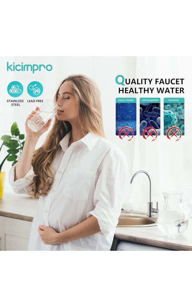 Open box New item! No Splashing: The slender water outlet design and reasonable camber for the water filter faucet make the water in the center, and the water is soft and centralized without splashing, meeting the daily water needs of the family. Healthy Drinking: Healthy materials for reverse osmosis faucet is selected to ensure the safety. The whole process of water passage keeps your water clean all the way from the filter to the spout of drinking water faucet for kitchen sink. Drink healthy water and stay away from inferior sink filter water faucet to enjoy your healthy life. No Leakage: Drinking water faucet high-grade cartridge with excellent sealing, tested before leaving the factory to ensure no leakage and no dripping. Exceed industry longevity standards to assure smooth handle operation. Healthy Materials: RO faucet made by SUS304 stainless steel that is lead-free and never get rust. The all-metal body is for maximum durability. The sink water filter faucet is made of food grade SUS304 stainless steel material. It is the best choice for family health especially kids. Standard Size: Kicimpro filtered water faucet, fitting 0.59 inch to 1.37 inch kitchen sink holes, can be used with RO water purifier, sink water filtration, kitchen, RV to meet different needs. Provide 2 kinds of quick connectors (1/4" and 3/8") to meet your various installation needs. You can also reach out to us for special needs(extra adapters or bigger deck plate).