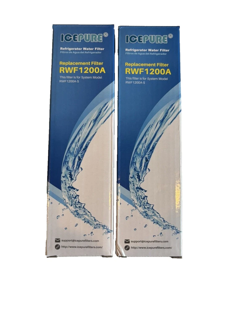 The Water Filter Replacement RWF1200A IcePure Lot Of 2 is a pack of two white water filters by the brand IcePure. These filters are compatible with LG and Kenmore brands, specifically designed for household use. The model number is RWF1200A and they are suitable for filtering water in various appliances. The product is not discontinued and does not include batteries. It ships from the USA and is a convenient option for maintaining clean water in your home.