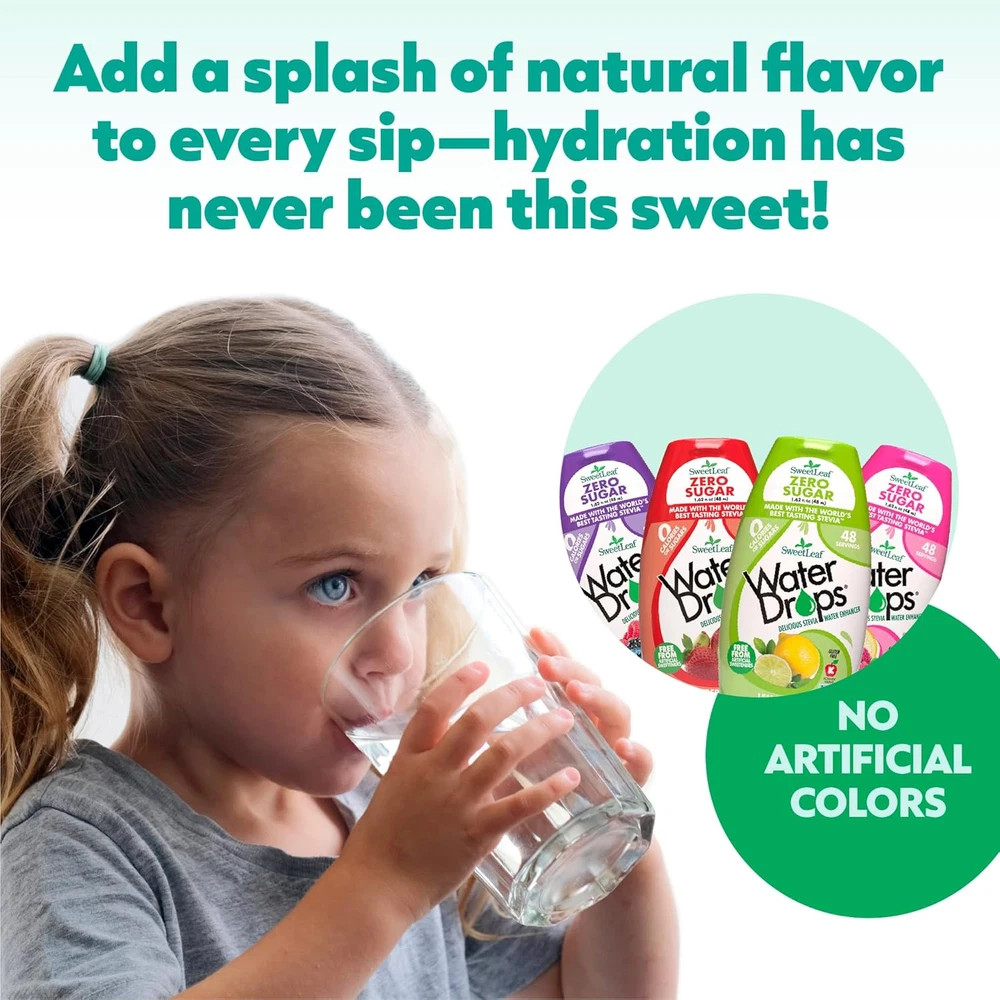 Store New Arrivals Add to Favorite View Feedback Water Flavoring Drops - Stevia Water Enhancer, Sugar Free, Zero Calorie Water Additive for Flavor, Contains Monk Fruit Extract, Gluten Free, Keto Friendly - 1.62 Fl Oz (Variety Pack of 4) Description Is Discontinued By Manufacturer No Product Dimensions 4.5 x 2 x 4.5 inches; 1.62 ounces Item Weight 1.62 Ounces Special Ingredients Natural Flavor Units 6.48 Fluid Ounces Package Information Bottle Item Form Drop LIQUID WATER ENHANCER DROPS: SweetLeaf Water Drops deliver satisfying sweetness without added sugars. Enjoy the taste you love with zero calories, perfect for enhancing your favorite recipes ALL YOUR FAVORITE FLAVORS: Transform plain water with raspberry lemonade, lemon lime, strawberry kiwi, or peach mango. We use stevia leaf and monk fruit extract to brighten your cup full of flavor CONVENIENT FOR ON THE GO: With its compact 1.62 oz squeezable bottle, our water flavoring drops are easy to carry, so you can enjoy zero-calorie sweetness anytime, anywhere NO ADDED SUGAR: Enhance your favorite drink mixes by replacing sugar, not the taste. SweetLeaf's water flavoring drops are sweetened by nature with no sugars, calories, or artificial ingredients PERFECT FOR EVERY LIFESTYLE: Our delicious stevia water enhancer is keto friendly with zero calories or carbs. Enjoy naturally sweet flavor with no artificial ingredients or aftertaste Product description ABOUT US We offer the best prices around on high quality products. Our E-store includes media such as books, movies, music and games while offering electronics, toys, sporting apparel, clothing, tools, general home, garden items and more. SHIPPING We are always working hard to ensure your package arrives as soon as possible. Please understand that some factors like weather, high postal traffic, and the performance of shipping companies are outside of our control. We offer free shipping to the lower 48 states and ship within 2 business days of payment, usually sooner. We do not accept P.O. Boxes. Please provide a physical address. RETURNS We offer a 30-Day Return Policy on items which you are not completely satisfied with. You have the option for a full-refund or an exchange of the item. No returns are available on items shipped outside of the USA. PAYMENT We accept PayPal. CONTACT US This page content is yet to come Please ad us to your favorite seller and visit again later Thank You