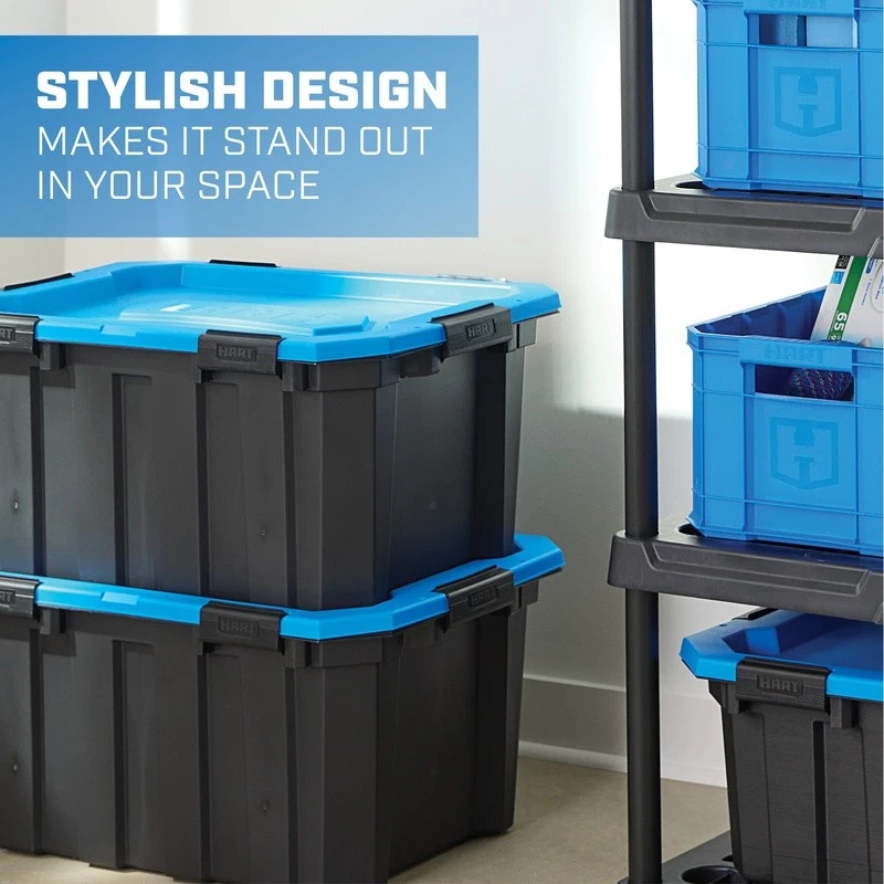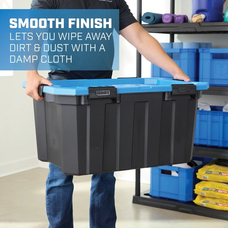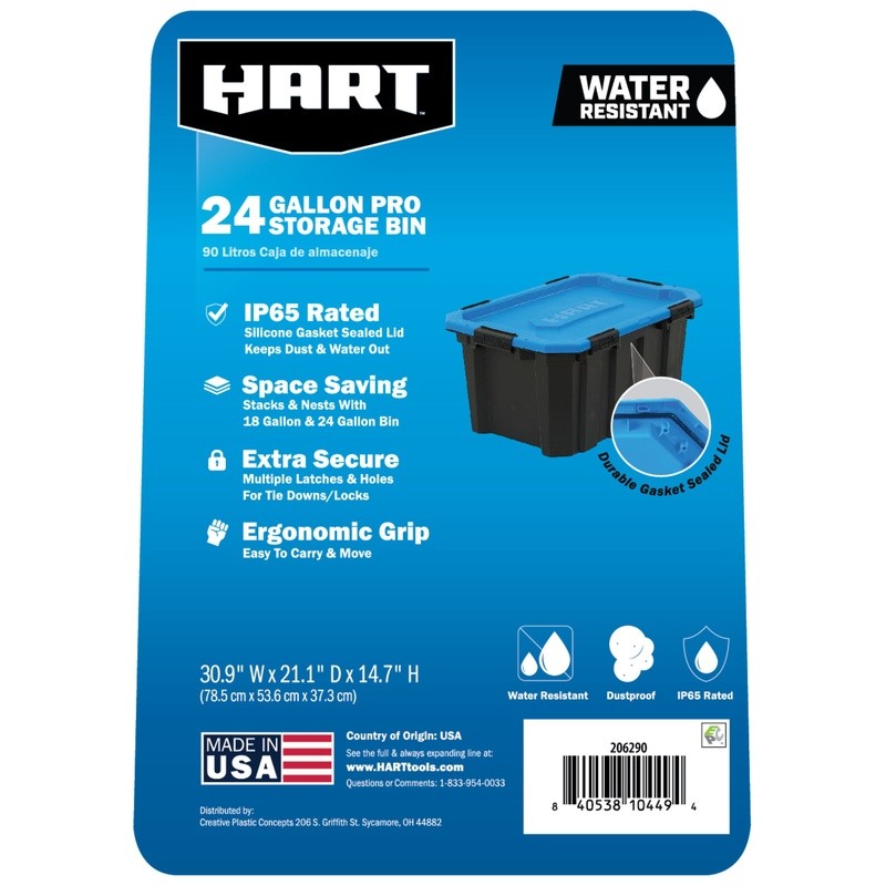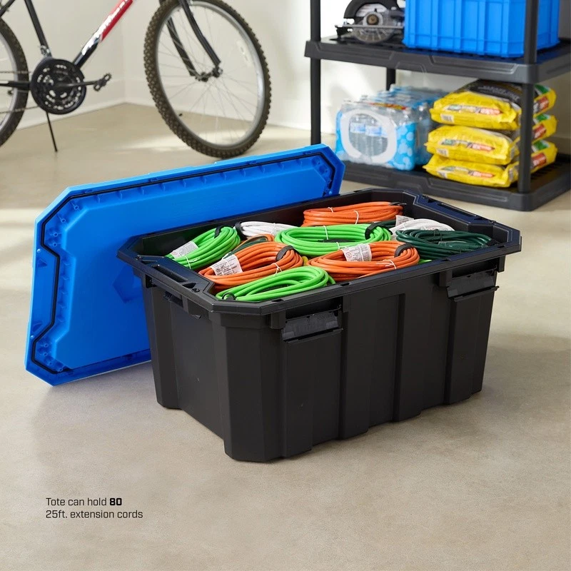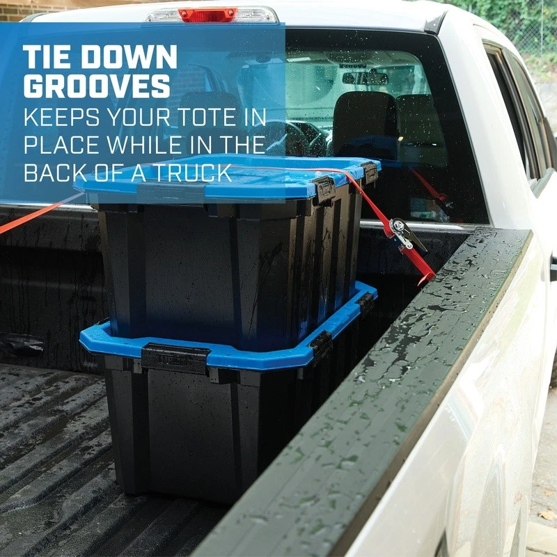 You may also like Clear Plastic 20 Qt Bins Stackable Containers W/ Snap On Lid Pack of 8 BPA Free 46.84 USD 49.3 USD Free shipping 5% off 62 Qt Airtight Plastic Bin Storage Containers Stackable Tote w/Sealed Blue Lid 40.99 USD 43.15 USD Free shipping 5% off 2 Pack Clear Latch Storage Bins Stackable Plastic Organizing Containers Home Use 35.58 USD 37.45 USD Free shipping 5% off Portable Teal Sachet Footlocker Durable Storage Camping Gear & Sports Equipment 52.24 USD 54.99 USD Free shipping 5% off Lockable Footlocker Toolbox Container Adult Plastic W/ Wheels Infra Red 23 Gals 25.73 USD 27.08 USD Free shipping 5% off Hinged Lid Stackable 3 Pack Industrial Plastic Storage Tote Nesting Container 178.27 USD 187.65 USD Free shipping 5% off 16 Gal Underbed Storage Organizers Containers Stackable Durable Garage Office US 46.69 USD 49.15 USD Free shipping 5% off Stackable Slide Out Drawer Organizer Bathroom & Beauty Essentials 2 Pack Durable 42.67 USD 44.92 USD Free shipping 5% off 5 Gallon Latching Plastic Storage Bin Stackable Container Organizer Set of 4 US 49.72 USD 52.34 USD Free shipping 5% off 4 Pack 11 Gallon Heavy Duty Plastic Storage Box Industrial Garage Containers New 65.18 USD 68.61 USD Free shipping 5% off 6 Pack 14 Gal Plastic Storage Box Container Bins with Lids and Handles Stackable 140.71 USD 148.12 USD Free shipping 5% off Airtight Storage Bins Clear Plastic 6Qt Stackable Containers 5Pk Organization US 29.08 USD 30.61 USD Free shipping 5% off The 24 Gallon Heavy Duty Water Resistant IP65 Certified Latching Storage Bin, Black Base with Blue Lid provides the ultimate in garage storage. This storage tote brings peace of mind when having to store expensive items such as power tools, lasers, or delicate items that must be kept dry. This water resistant and dust proof storage container has a specially designed gasket lid along with 6 extra strong black latches to keep everything dry and clean. The gasket seal in the lid will stay in place to keep the lid tight and in place. A deep recess lid for maximum vertical storage helps reduce toppling when stacked. Made for any on-the-go occasion, the tie down grooves provides extra security when placed in the back of a truck or a trailer hitch and used with tie down straps. The durable plastic makes this storage bin long lasting and easy to clean. The IP65 Storage tote comes in both an 18 Gallon and 24 Gallon size with an interchangeable lid that works on either size. The 18 Gallon and 24 Gallon storage containers also have the same width and length for effortless stacking. A perfect storage solution to help organize items for adults or kids. Build your perfect storage organization system with other sizes that are available, such as, 50 Gallon Latching Tote, 40 Gallon Latching Tote, 17 Gallon Latching Tote, 12 Gallon Latching Tote, 5 Gallon Latching Tote, and combine it with our plastic storage shelves, available in 4-tiers or 5-tiers in a variety of widths and depths. WATER RESISTANT: Protection from rain, snow and sleet IP65 CERTIFIED: Provides assurance that your valuables stay dry from water and safe from dust WEATHERMAX® GASKET SEALED LID: Designed to keep water out for complete water resistant protection HEAVY DUTY CONSTRUCTION: Provides durability for even the toughest job STACKABLE: Tote maximizes vertical storage space and prevents toppling INTERCHANGEABLE LID: Works with both the 18 Gallon and 24 Gallon tote HOLES FOR ZIP TIES and LOCKS: Protect your items when you need it TIE DOWN GROOVES: Keep your tote in place while in the back of a truck 6 BLACK LATCHES: Prevents the lid from getting loose and valuables from spilling STYLISH DESIGN: Make it stand out in your space STACKS: with other 18G IP65 or 24G IP65 storage bins You may also like Rustic TV Stand 50in TVs Adjustable Shelves Storage Entertainment Center New 105.69 USD 111.25 USD Free shipping 5% off Meal Replacement Shakes 9g Protein 25 Vitamins 220 Cal Gluten Free 24 Pack New 32.11 USD 33.8 USD Free shipping 5% off Adjustable Chrome Base Round Swivel Pub Table Bistro Café Indoor Outdoor Black 71.24 USD 74.99 USD Free shipping 5% off 30" Stackable Metal Stools Set of 4 Durable Scratch Resistant Anti Slip Indoor 128.25 USD 135.0 USD Free shipping 5% off Lawn Garden Tire 16X6.50-8 4-Ply Ribbed Tread Durable Construction Upgrade New 29.55 USD 31.1 USD Free shipping 5% off Kids Pretend Cooking Toys BBQ Playset W/ Working Sink Oven Accessories Plastic 83.09 USD 87.46 USD Free shipping 5% off Frozen Chicken Mozzarella Lunch Melt 12 Count High Protein Meal Diet Friendly US 47.49 USD 49.99 USD Free shipping 5% off Outdoor 4 in 1 Wood Fired Pizza Oven Detachable Grill Pizza Stone Accessories US 115.32 USD 121.39 USD Free shipping 5% off Durable Food Storage Container 3.5 Gallon Freezer Safe Polycarbonate Tote Box US 34.83 USD 36.66 USD Free shipping 5% off Cooking Tripod Charcoal Wood Campfire Heavy Duty Folding Portable Outdoor Steel 30.87 USD 32.49 USD Free shipping 5% off Mesh Rocking Camp Chair W/ Canopy Adjustable Cupholder Outdoor Comfort New 70.06 USD 73.75 USD Free shipping 5% off 13 Gal Trash Bags 1000 Count Kitchen Dustbins Liners Black Plastic Leak-Proof US 64.66 USD 68.06 USD Free shipping 5% off