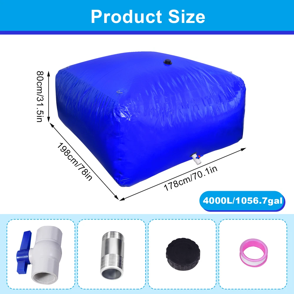 Capacity: 3000/4000 L Color: Blue Department: Unisex Adults Brand: NTUD Size: 792/1056 Gal Material: PVC Item Weight: 11.12 kg Frame Material: PVC Type: Water Tank Bladder