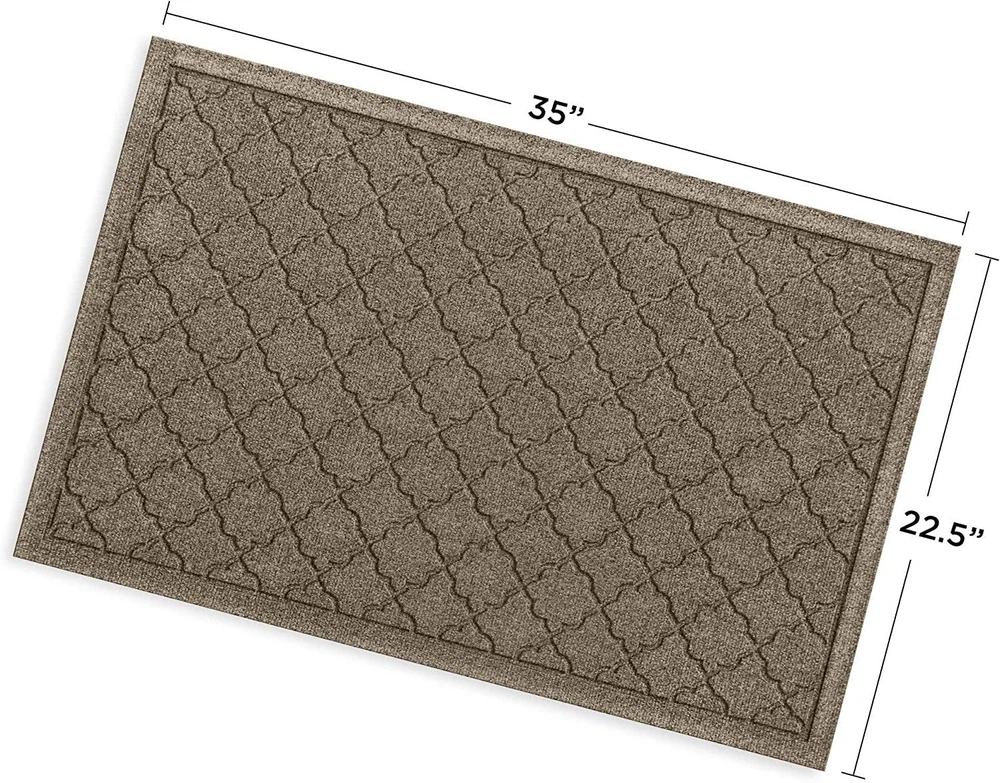 DURABLE, ECOLOGICAL CONSTRUCTION: Made in the USA, our WaterHog entrance mat is crafted with up to 94% recycled PET fiber and 20% recycled rubber backing, ensuring durability and long-lasting performance in high-traffic areas, both indoors and outdoors. EFFICIENT DIRT AND MOISTURE TRAPPING: This absorbent door mat features a ribbed abstract design and raised 'Water Dam' border, trapping up to 1 gallon of water per square yard. It effectively manages moisture and debris, suitable as an entrance mat or backyard doormat. SKID-RESISTANT, SAFETY-FOCUSED DESIGN: Certified by the National Floor Safety Institute, this heavy-duty entry rug features a skid-resistant backing to reduce accidents on hardwood, tile, concrete, and more, ensuring safety indoors and outdoors. EASY MAINTENANCE AND CLEANING: Designed for hassle-free upkeep, this entrance floor mat can be shaken, vacuumed, or hosed off to clear dirt. Simply let it air dry to keep it fresh, making it ideal for constant use in high-traffic spaces. VERSATILE SIZING FOR EVERY NEED: The 2' x 3' size with a low 3/8" pile height fits a wide range of doorways, making this WaterHog heavy-duty doormat an ideal choice for entryways, mudrooms, offices, or any high-traffic areas where moisture and dirt management are needed.
