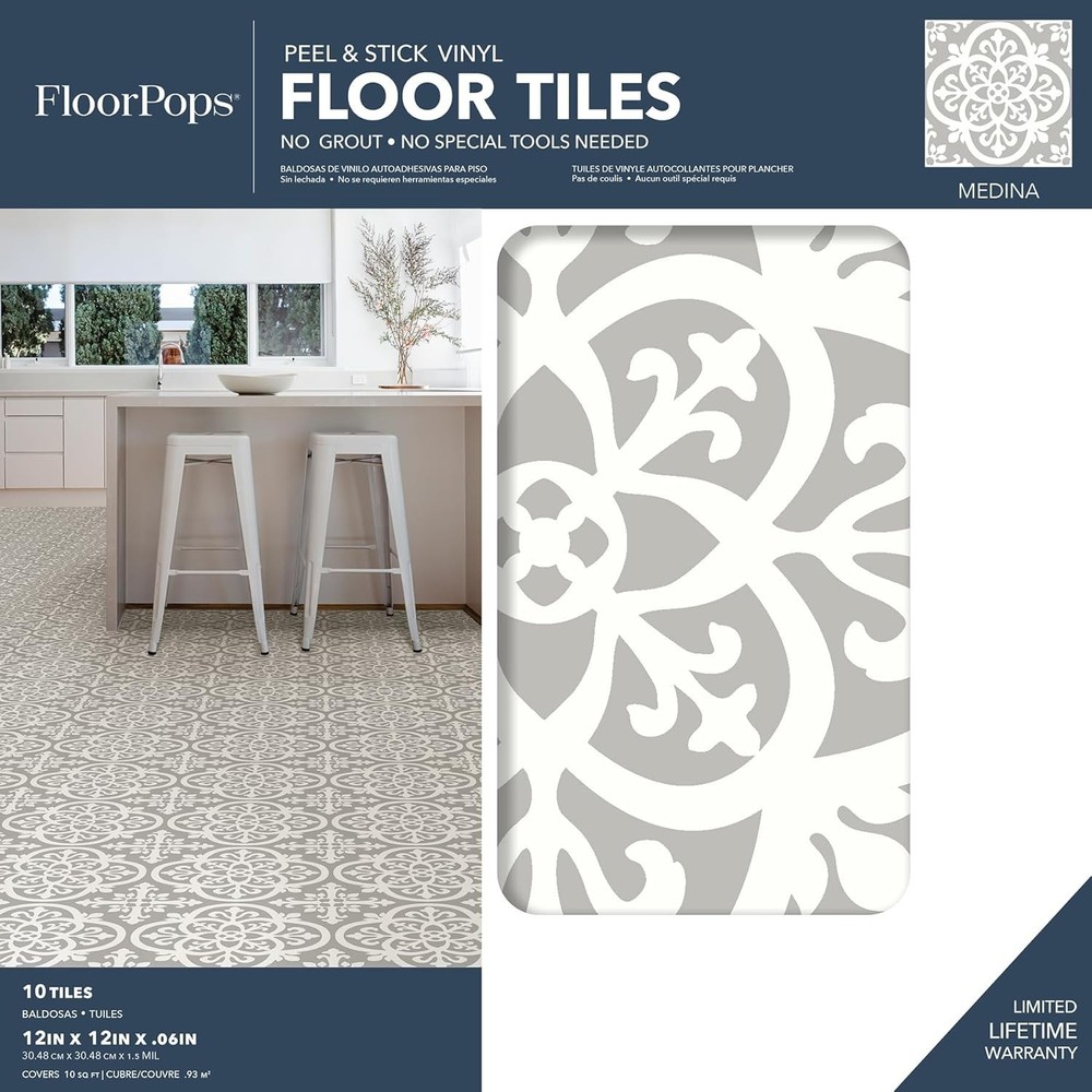 Water-Resistant Medina Peel & Stick Floor Tiles - Effortless Installation ‹ › ‹ › ‹ › ‹ › ‹ › ‹ › ‹ › ‹ › ‹ › ‹ › Water-Resistant Medina Peel & Stick Floor Tiles Transform your spaces effortlessly with our stunning Medina Peel & Stick Floor Tiles. Designed for the modern homeowner, these tiles promise an elegant touch combined with practicality. Key Features: Effortless Installation: Simply peel and stick to apply — no grout or special tools necessary! Durability: Made from virgin vinyl material with a textured low lustre finish, these tiles are engineered to withstand daily wear. Water-Resistant & Washable: Perfect for high-traffic areas and easy to maintain — just wipe clean. Chic Design: Featuring light grey and white hues, these tiles boast an intricate ironwork design with a gothic flair, adding sophistication to any room. Perfect Sizing: Each tile measures 12 x 12 inches, and one package contains 10 tiles, covering a total area of 60 in x 24 in when assembled. Benefits: Instantly enhances the beauty of your home with a stylish farmhouse aesthetic. Eco-friendly and Certified for residential use, ensuring safety and quality. Ideal for any room in your house — kitchens, bathrooms, living areas, or entryways. Quick and hassle-free installation — perfect for DIY enthusiasts. Why Choose Medina Peel & Stick Floor Tiles? Elevate your home decor effortlessly with Medina Peel & Stick Floor Tiles. Designed for convenience and style, these tiles not only save you time during installation but also provide a luxurious touch to your flooring without the need for professional help. Experience the winning combination of beauty and durability with the ease of maintenance, allowing you to focus on what truly matters — enjoying your space. Don’t miss out on revamping your interior — grab your set of Medina Peel & Stick Floor Tiles today and redefine your home’s elegance! Shipping Free & Fast Shipping - We offer free shipping to most of the USA with a normal delivery time of 3-7 days. However, due to the current situation, additional delivery time (up to 3 weeks) may be required for some items. Alternative Carriers - We may use alternative carriers (e.g. USPS, FedEx, UPS, etc.) to ensure your package arrives safely and on time. Due to the use of multiple carriers, we are unable to provide a tracking number automatically. Handling Time - Orders are processed and shipped within 1-2 business days of receiving cleared payment. Shipping Restrictions - Shipping to Alaska, Hawaii, Puerto Rico, Guam, and other US territories may incur shipping charges or delivery restrictions. Please contact us before ordering, or your order can be refunded/cancelled. State Restrictions - There may be restrictions based on your state of purchase. For example, certain items may not be shipped to California due to state regulations. Contact for Tracking Updates - If you require tracking updates or have any concerns about the delivery of your order, please feel free to contact us, and we will be happy to assist you. Return 30-Day Hassle-Free Returns - We want you to be completely satisfied with your purchase. If you are not, you can return the item within 30 days of receiving it for a full refund or exchange. Easy Return Process - To start a return, simply contact us and we will provide you with a prepaid return shipping label and detailed instructions. Restocking Fee - There are no restocking fees for returns. However, the buyer is responsible for return shipping costs if the return is not due to a seller's error. Refund Processing Time - Refunds will be processed within 5 business days of receiving the returned item in its condition. Payment We accept all major credit cards, PayPal, and Apple Pay for your convenience. Your payment information is secure and encrypted to ensure a safe and seamless transaction. Please complete your payment within 3 days of purchase to avoid any delays in shipping. Feedback Your feedback is extremely important to us. We strive to provide the best products and customer service possible. If you are satisfied with your purchase, please take a moment to leave us a positive review. If you have any concerns or issues with your order, please contact us before leaving negative feedback. We are committed to resolving any problems and ensuring your satisfaction. Contact Us If you have any questions or concerns, please feel free to out to our customer support team. You can contact us through the eBay messaging system. We are available Monday to Friday, 9:00 am to 5:00 pm EST, and we will do our best to respond to your inquiry within 24 hours. Buy it now and enjoy a pleasant shopping experience! Series: FloorPops FP2942 Medina Unit Quantity: 10 Material: Vinyl,Virgin vinyl Room: Bathroom,Kitchen,Living Room,Entryway Features: Water Resistant,Washable,Easy to install,Permanent Adhesive,Durable Installation: Peel-and-Stick Suitable For: Floor,Indoor,Residential Flooring,Kitchens,Bathrooms,Entryways,Decorative Living Spaces Color: Gray Type: Floor Tile Style: Farmhouse Finish: Semi-Glossy Item Weight: 5.5 lb Tile Size: 12 x 12 in Item Thickness: 0.06 in Number in Pack: 10 Pattern: Geometric Tile Shape: Square Tile Look: Patterned Tile Surface Texture: Smooth Coverage per Case: 10 ft² Edge Design: Straight Edge Grade: Grade 1 PEI Rating: 0 - No Foot Traffic Break Strength: 90 kg