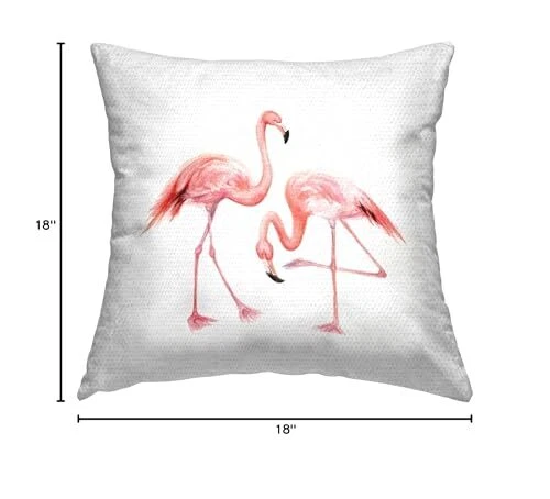 Update your outdoor living space with ’ Decorative Outdoor Printed Pillow in a wide variety of colors, styles, and trends. The printing process makes the ink part of the fabric for greater outdoor durability. Quick-dry pillows arrive with inserts already zipped inside their case. Ideal for outdoor couches, chairs, loungers and benches. Pillow cases printed in the USA. Dimensions: 18 x 18 Inches, Including Filling Insert Decorative outdoor pillows are a great and easy way to decorate your outdoor living space, adding both a decorative accent and comfort. Pillows arrive with insert already zipped inside and ready to fluff. Casing and filling insert are both made of quick-dry soft polyester material. The printing process makes the ink part of the fabric for greater outdoor durability. To wash remove filling insert from casing using invisible zipper. Clean pillow case separately, machine wash on delicate with cold water and mild detergent. For best quality hang dry. Pillow insert is spot clean only. Artwork Relates To: Animal, Bird, Tropical, Flamingo Design by Fox Hollow Studios