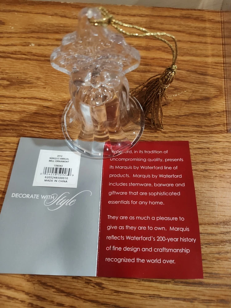 Waterford 2012 Marquis Annual Actual Ringing Bell Christmas Ornament # 156543 Original Packaging Hardly Used -Excellent