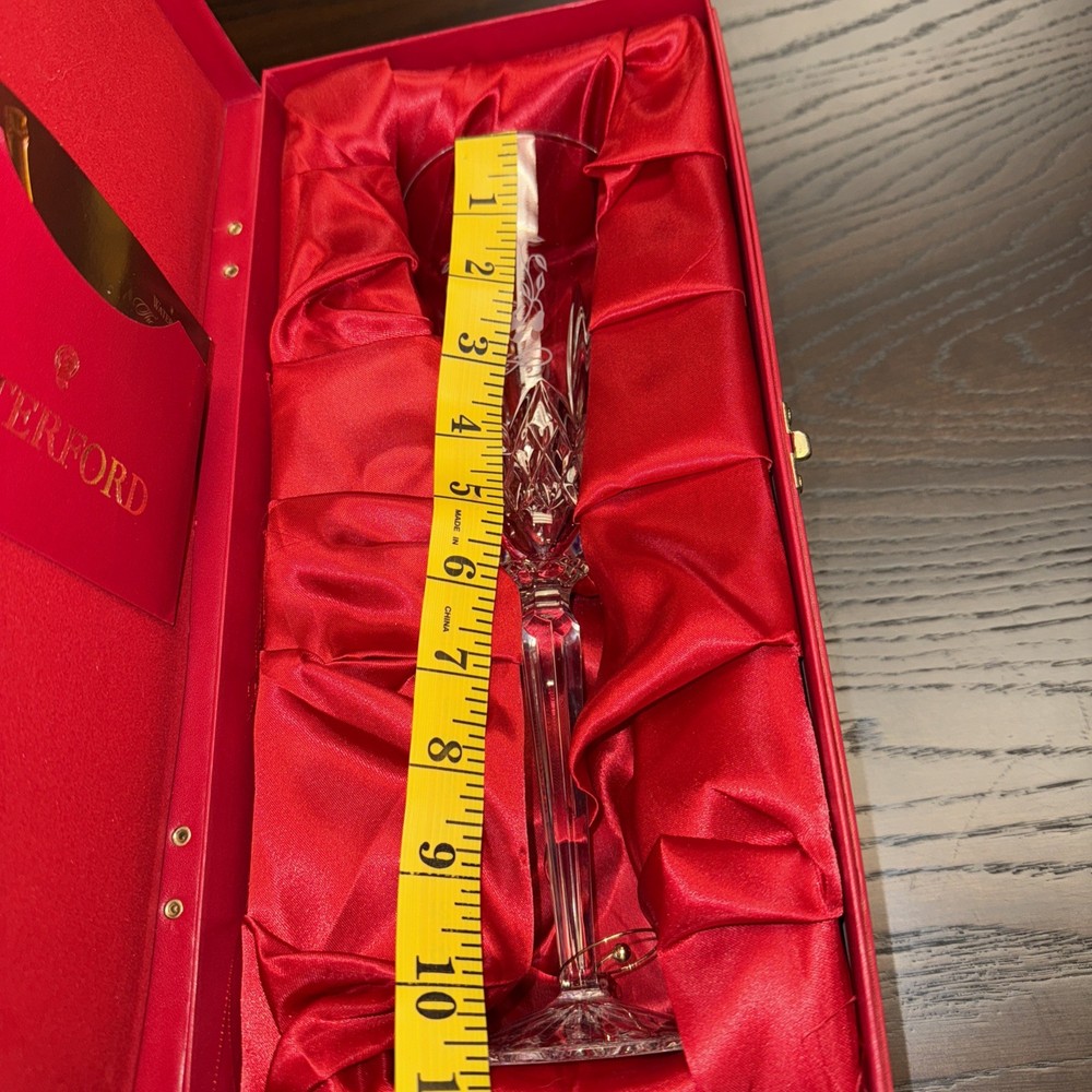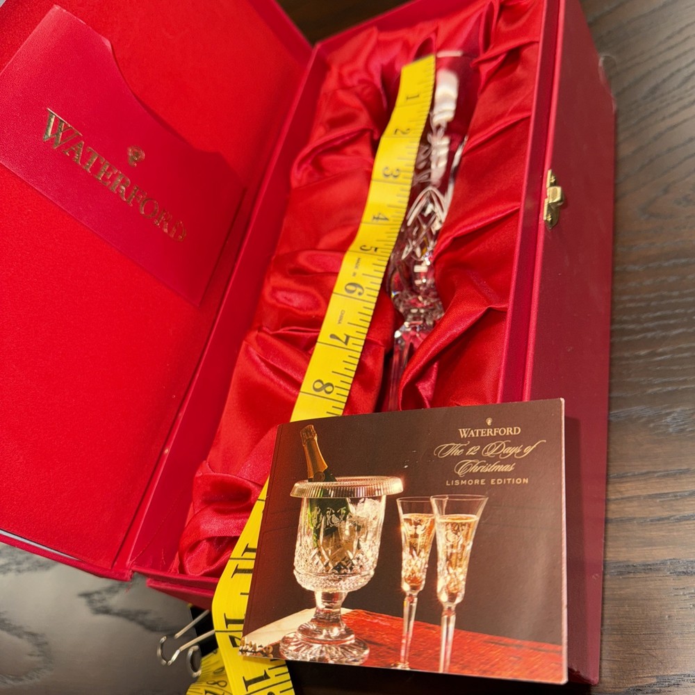 Material: Crystal Theme: Birds, partridge, pears, Christmas, Holiday Type: Champagne Wine Flute Glass Care Instructions: Hand Wash Only Occasion: Christmas Time Period Manufactured: 2000-2009 Department: Unisex Adults Signed: Yes Brand: Waterford Vintage: No Number of Items in Set: one Original/Licensed Reproduction: Original Country/Region of Manufacture: Ireland Year Manufactured: 2005 Pattern: Etched Patterns Features: Limited Edition, Etched, With Presentation Box Color: Clear Product Line: The 12 Days of Christmas Shape: Tapered