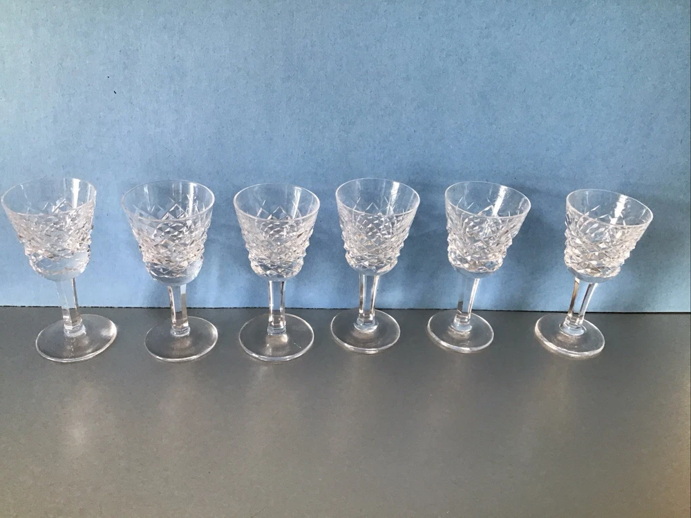 MPN:Does not applyBrand:WaterfordMaterial:CrystalShape:RoundType:Cordial GlassVintage:YesColor:ClearPattern:AlanaTime Period Manufactured:1952-1990Style:ContemporaryProduction Style:Elegant GlassFeatures:EtchedProduction Technique:Studio CraftedCountry/Region of Manufacture:Ireland