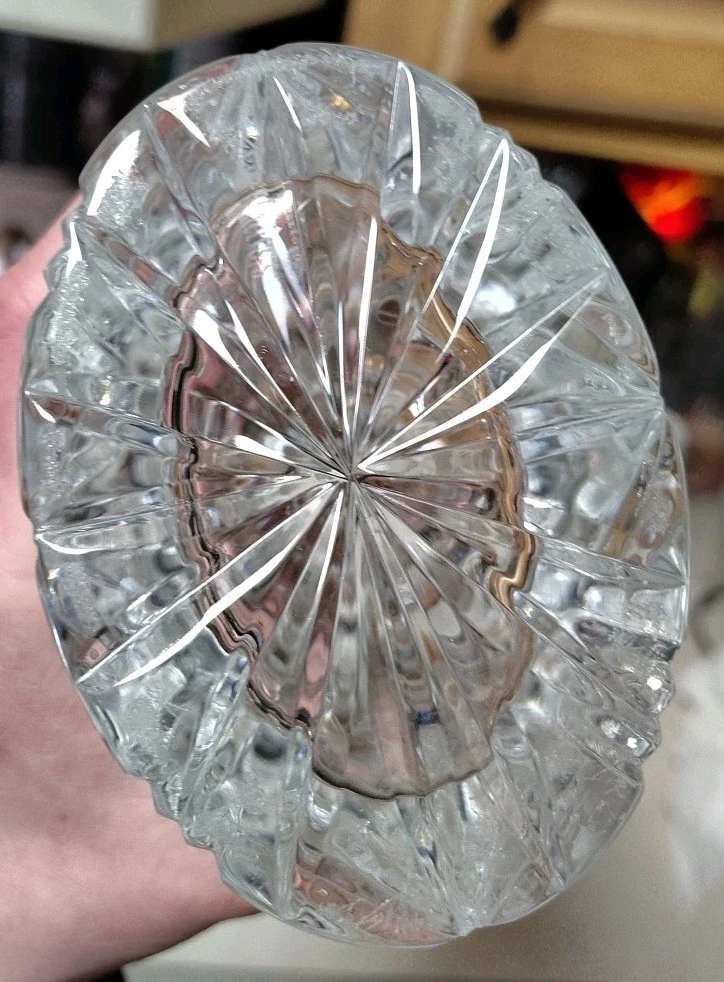 THIS ITEM IS PRE-OWNED AND HAS SOME SIGNS OF WEAR ON THE BOTTOM HOWEVER IT IS NOT DAMAGED. This is a Waterford crystal oval vase that was discontinued in 1996. It features the Castleton pattern and is signed by Jim O'Leary. The vase is made of clear crystal and is an original piece. The backstamp is printed.