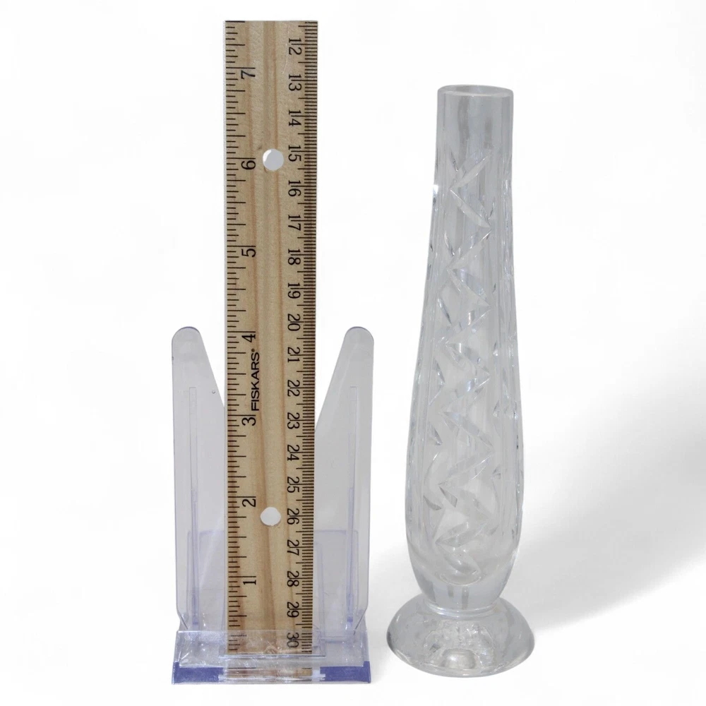 This elegant Waterford crystal bud vase, standing at 6.75 inches, showcases a timeless zig-zag cut design. A beautiful addition to your decor, it reflects a storied tradition of craftsmanship and artistry. • Authentic Waterford crystal • Zig-zag etched pattern • Sturdy round base for stability • Approx. 9" tall • Ideal for single blooms or small arrangements Minor scuffs on the base, no chips or cracks noted. Top to bottom = 6.75 inches. Discover More Treasures at A&M Collectibles! Explore our curated selection of unique collectibles—from rare sports cards and trading card games to captivating comics and timeless toys. New gems are added regularly, so there is always something exciting to uncover. Visit Our Store at https://www.ebay.com/str/anmcollectibles and find your next prized possession today!