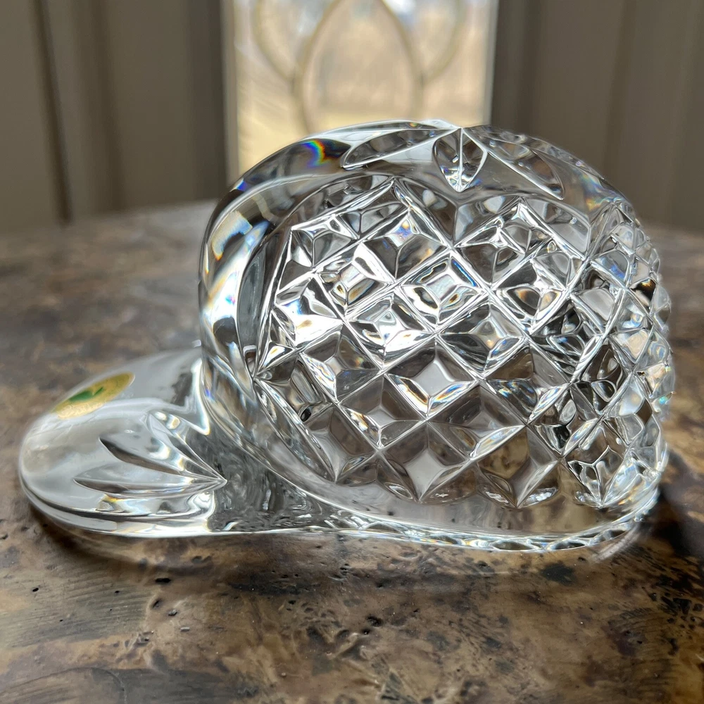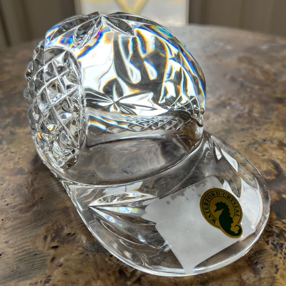 Waterford Crystal - Baseball Hat For your consideration, Waterford Baseball Hat portrayed in brilliant Waterford Crystal. New old stock, never displayed. "This crystal Baseball Cap is a celebration of an All-American sport and a salute America's love of baseball. Give it as a gift to the ballplayer in your life and share their excitement in the sport, or commemorate and cherish your most important baseball memories." 5" Long, 3" Wide, 3" High Acid etched Waterford mark present (red arrow) Will arrive in the original box Ships insured Have other Waterford listed Value Added Service We answer emails personally and understand you have concerns and questions that may be outside of the scope of the auction copy Feedback is left by us when we receive your payment. It's the very least we can do to thank you for putting your trust in us We know how to pack, using the proper materials to best protect your purchase Shipping Buyer is responsible for shipping costs, unless the listing is advertised as "Free Shipping". The shipping fee is either clearly stated or the eBay calculator determines shipping based on your zip code and the box particulars. Multiple purchases may have an unknown shipping rate due to fluctuations in weight but items will be combined to save money whenever possible. Insurance is always provided by us to cover loss or in the rare instance, damage If you intend on bidding on multiple items, please let us know so we don't start packing in advance In the case of damage in an insured shipment: Retain all packing materials and the box that was received. Please submit digital images of the damage as well as the shipping box and packing materials via Contact Seller in eBay. Returns If you receive something not as described due to a blatant mistake on our part, we'll pay everything; return shipping as well as a full refund of the purchase price and the original shipping Buyer's Remorse: We are flexible if a purchased item arrives and you simply change your mind. A 15% restocking fee will be charged and return shipping is at buyer's expense Please notify us within three days of item(s) receipt and for pre-authorization (use the contact button). The item(s) must be returned and received in the same condition as when originally shipped. Item(s) must be returned shipping prepaid, insured for the full value and safely wrapped and packaged to prevent shipping damage. Unless stated as new, these pieces have been around for many years, some as many as 100 years and are sold as described. They may have been displayed, used, washed, packed, etc The pictures and descriptions are as detailed as possible, and all reasonable care has been taken to describe as accurately as possible along with any damage or issues noted. However, vintage and antiques are previously owned If anything less than perfect, out of the box, isn't acceptable, these style pieces may not meet your standards.