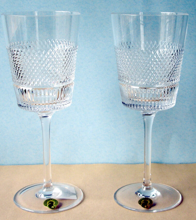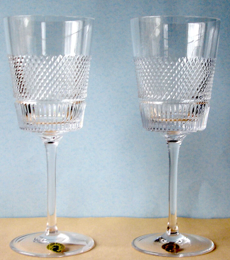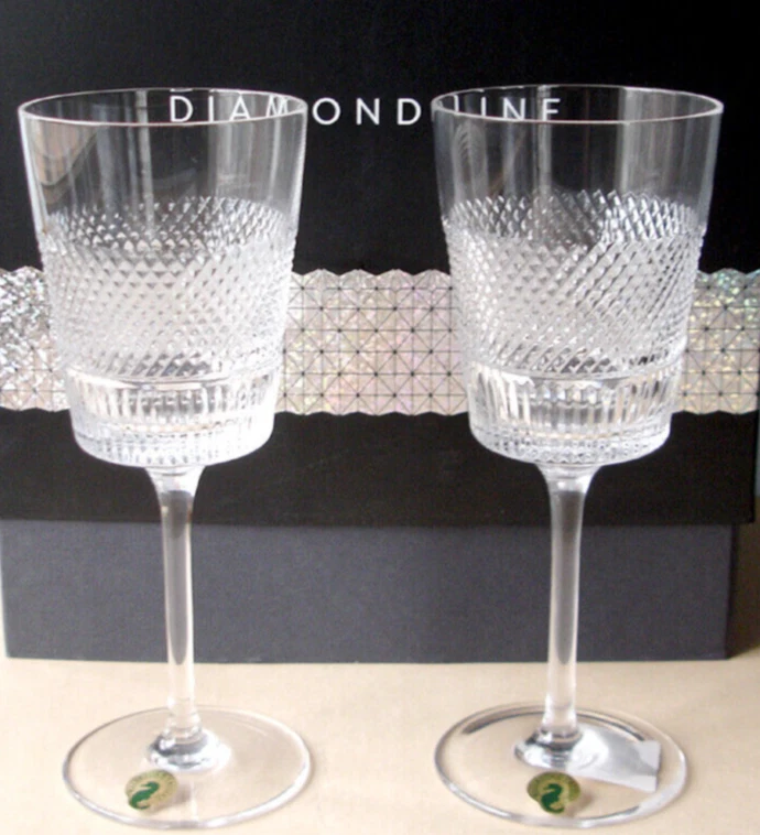 Waterford Crystal Diamond Line Wine Glass Boxed Set of 2 The Diamond Line collection is a celebration of light and sparkle, with clear crystal brilliance and upward scattering of light. Featuring a flared, modern shaped wine glass with an intricate diamond cut design for a unique finish. • Sparkles with light thanks to fine, intricately cut fine lead crystal • Approx. 8.5" tall x 3.25" top rim diameter, 10 fl. oz. • Made in Slovenia • Hand wash • Brand new, first quality in original large decorative packaging, never used or displayed • The perfect addition to your home or to give as a gift ------------- Please closely examine the listing and submit any questions prior to purchase. Smoke and pet free environment. Pictures may not reflect true colors due to various lighting conditions.