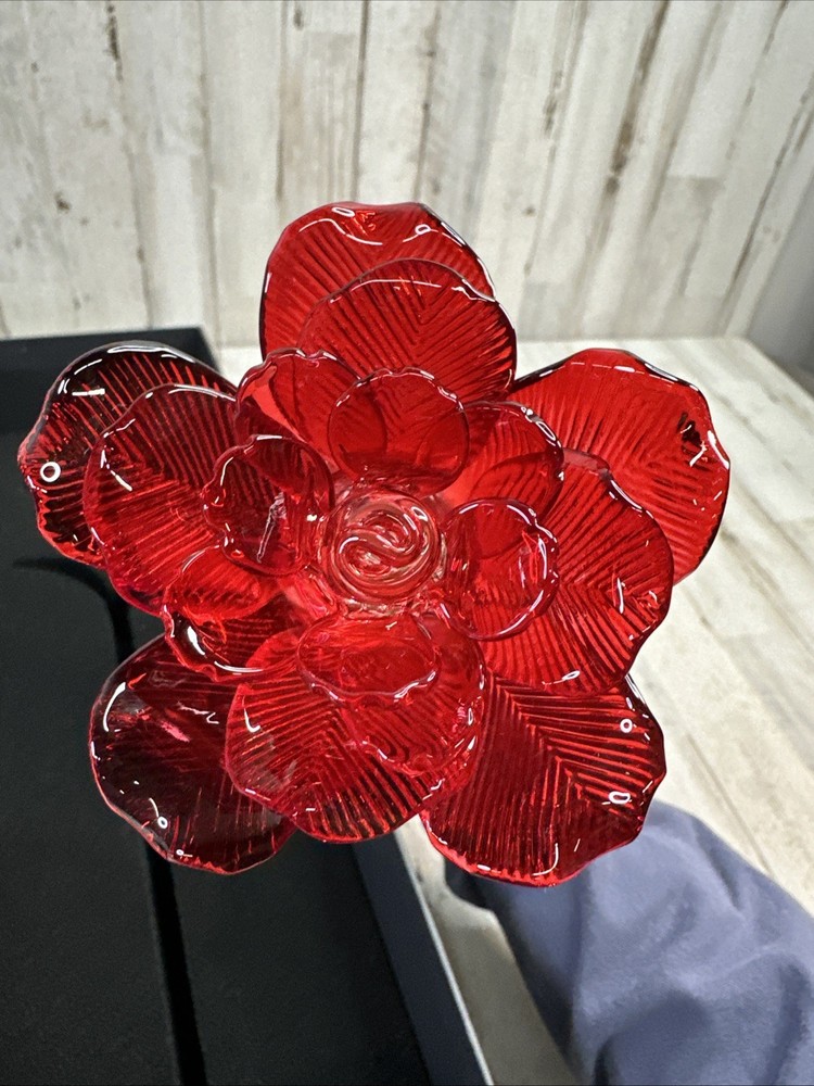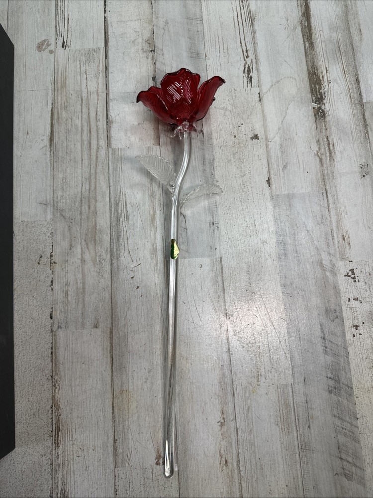 WATERFORD CRYSTAL FLEUROLOGY RED ROSE WITH STEM- 15" LONG