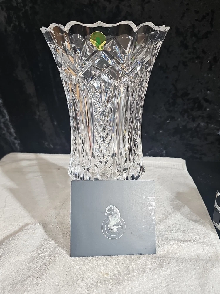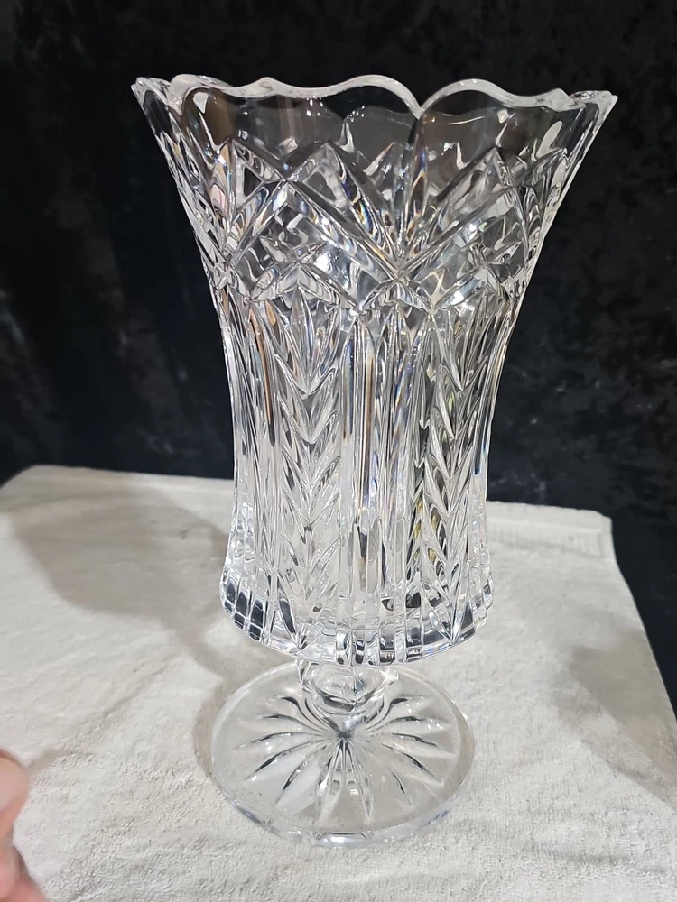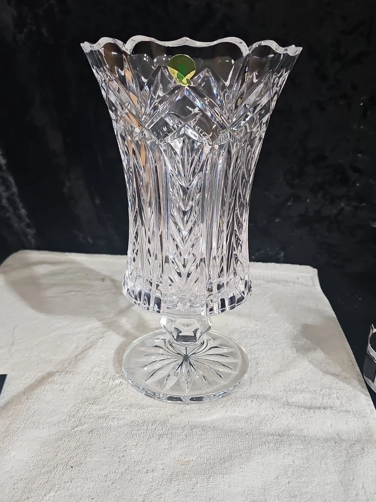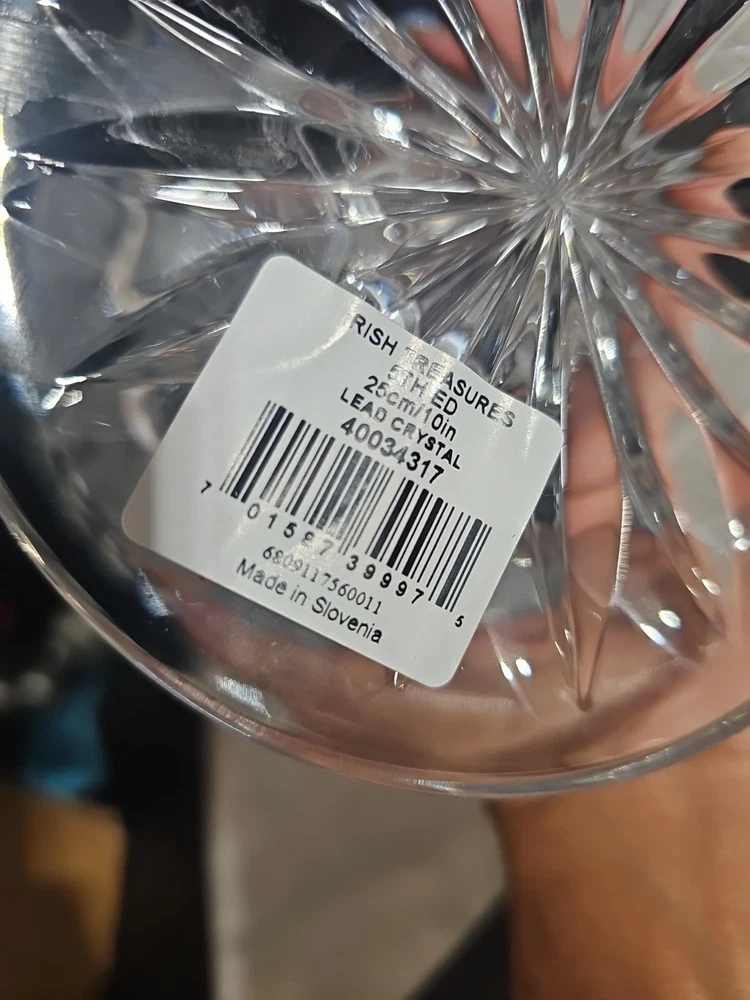 WATERFORD CRYSTAL IRISH TREASURE 10 3/4" FOOTED VASE 5TH ED good condition I have assigned it as used because the bottom part looks as if it had been glued there. I found it and that's how I put it up for sale. Thanks for looking at the details in the photos.