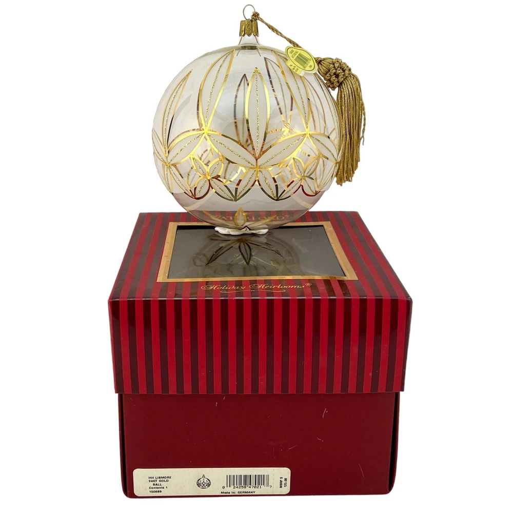 Waterford Crystal - Lismore 24CT Gold Ball Holiday Heirlooms Ornament For your consideration, "Lismore 24CT Gold Ball" ornament is an oversized ball hand-decorated with 24CT gold to replicate the timeless Lismore pattern. Much larger than the typical Holiday Heirlooms ball ornaments, I have taken a picture next to a typical Waterford Crystal ball ornament and then a soda can to help you envision size. The image of the ornament sitting atop the box is held in place with museum putty which is the white that you see underneath the ornament. 4-1/2" Across Hand made and decorated Beautiful, damage-free The ornament stand and clear ornament are not included but used as photography props "The name Waterford has been synonymous with fine quality and excellence in workmanship for over two centuries. For generations, the master craftsmen at Waterford Crystal have been creating the most beautiful and sought after crystal in the world. Waterford Holiday Heirlooms bring the tradition of hand cut crystal from the world's leading artisans to a collection of handcrafted holiday ornaments that reflect and illuminate the spirit of the season. The Holiday Heirloom ornament was created by highly skilled glass-blowers using centuries old techniques handed down from generation to generation. Artists skilled in the application of intricate detail painstakingly adorn and decorate each piece. The charm of handcrafting gives unique characteristics to your ornament. No two are exactly alike. With signature flourish, a Waterford inscribed hanger cap and coordinating with ribbon crown your Holiday Heirloom ornament." Ships insured Have more Christmas listed Value Added Service We answer emails personally and understand you have concerns and questions that may be outside of the scope of the auction copy Feedback is left by us when we receive your payment. It's the very least we can do to thank you for putting your trust in us We know how to pack, using the proper materials to best protect your purchase Shipping Buyer is responsible for shipping costs, unless the listing is advertised as "Free Shipping". The shipping fee is either clearly stated or the eBay calculator determines shipping based on your zip code and the box particulars. Multiple purchases may have an unknown shipping rate due to fluctuations in weight but items will be combined to save money whenever possible. Insurance is always provided by us to cover loss or in the rare instance, damage If you intend on bidding on multiple items, please let us know so we don't start packing in advance In the case of damage in an insured shipment: Retain all packing materials and the box that was received. Please submit digital images of the damage as well as the shipping box and packing materials via Contact Seller in eBay. Returns If you receive something not as described due to a blatant mistake on our part, we'll pay everything; return shipping as well as a full refund of the purchase price and the original shipping Buyer's Remorse: We are flexible if a purchased item arrives and you simply change your mind. A 15% restocking fee will be charged and return shipping is at buyer's expense Please notify us within three days of item(s) receipt and for pre-authorization (use the contact button). The item(s) must be returned and received in the same condition as when originally shipped. Item(s) must be returned shipping prepaid, insured for the full value and safely wrapped and packaged to prevent shipping damage. Unless stated as new, these pieces have been around for many years, some as many as 100 years and are sold as described. They may have been displayed, used, washed, packed, etc The pictures and descriptions are as detailed as possible, and all reasonable care has been taken to describe as accurately as possible along with any damage or issues noted. However, vintage and antiques are previously owned If anything less than perfect, out of the box, isn't acceptable, these style pieces may not meet your standards. - All sales are US only at this time.