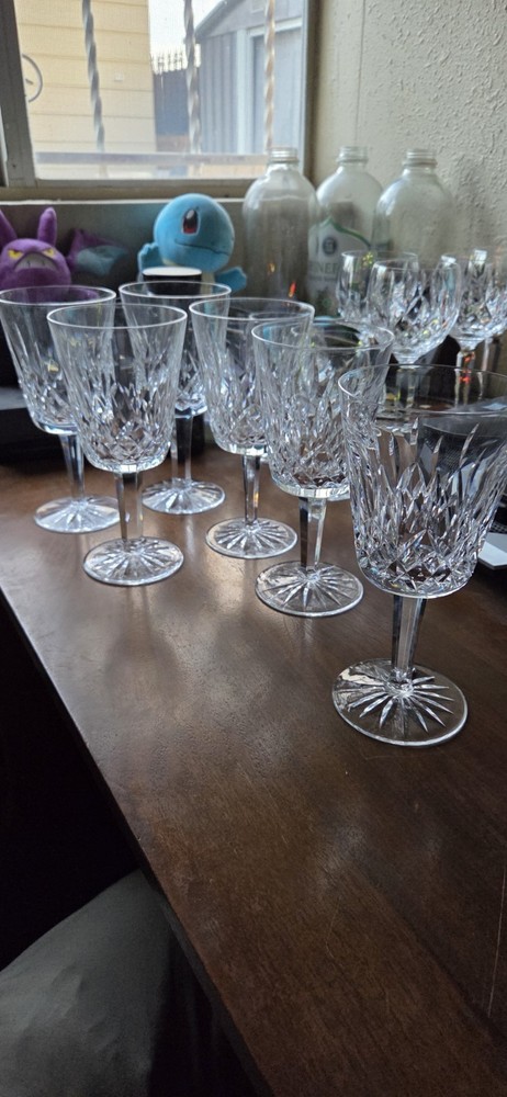Country/Region of Manufacture: Ireland Original/Licensed Reproduction: Original Features: Decorative Handmade: Yes Department: Unisex Adults Signed: Yes Style: Contemporary Occasion: All Occasions Material: Crystal, Glass Finish: Glossy Type: Wine Glass Production Technique: Hand Blown Glass Brand: Waterford Crystal Shape: Round Item Height: 6 7/8 in Vintage: Yes Care Instructions: Hand Wash Only Color: Clear Production Style: Cut Glass Pattern: Lismore