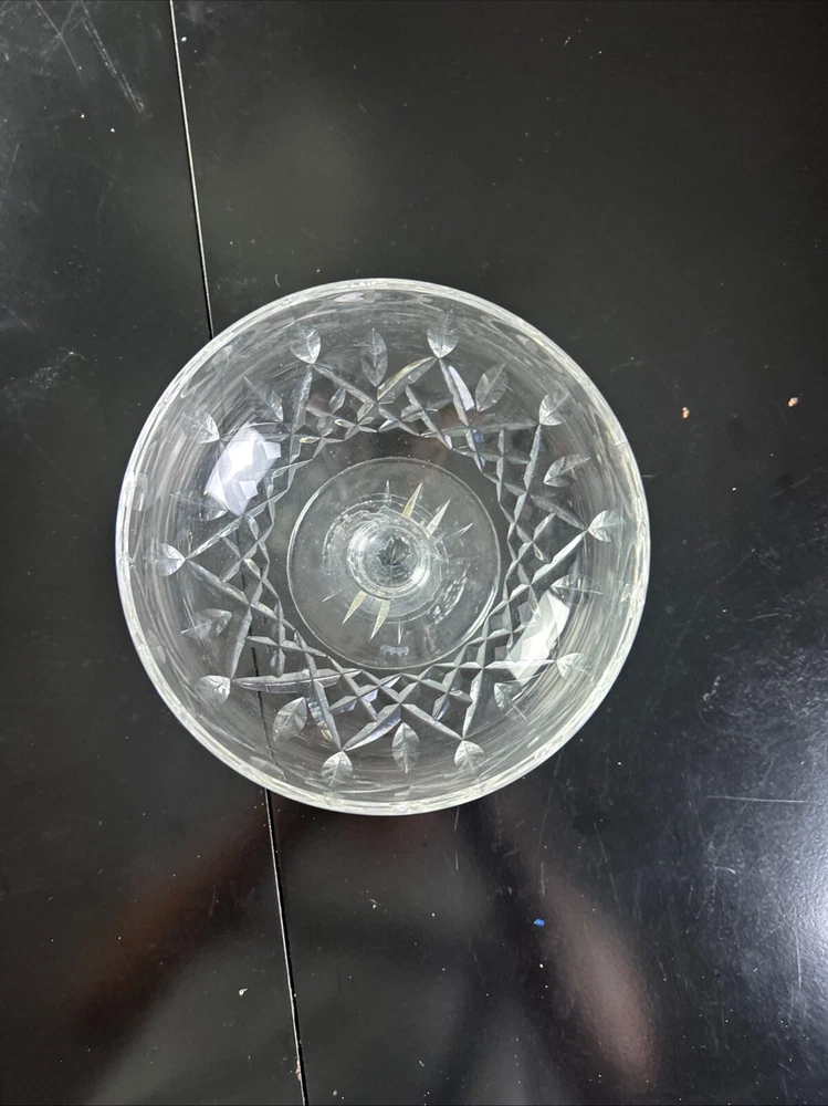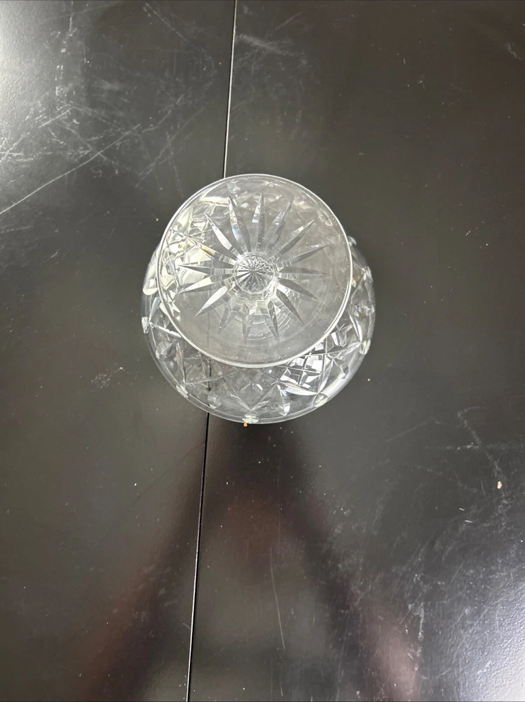 Elevate your home decor with the Waterford Crystal Lismore Round Compote Footed Candy Bowl Dish. A stunning piece crafted in Ireland, this bowl features the classic Lismore pattern, expertly cut into the finest crystal for a dazzling display of light and color. Ideal for serving candies, nuts, or as a standout decorative item, it fits seamlessly into any setting for all occasions.Measuring 6 1/4 inches in diameter and standing 4.5 inches tall, the bowl's round shape and clear color ensure versatility and elegance on your table or showcase. The printed backstamp authenticates its originality, while the one-piece set confirms its exclusivity. This Waterford piece, without the mark of time, is a timeless addition to your collection.