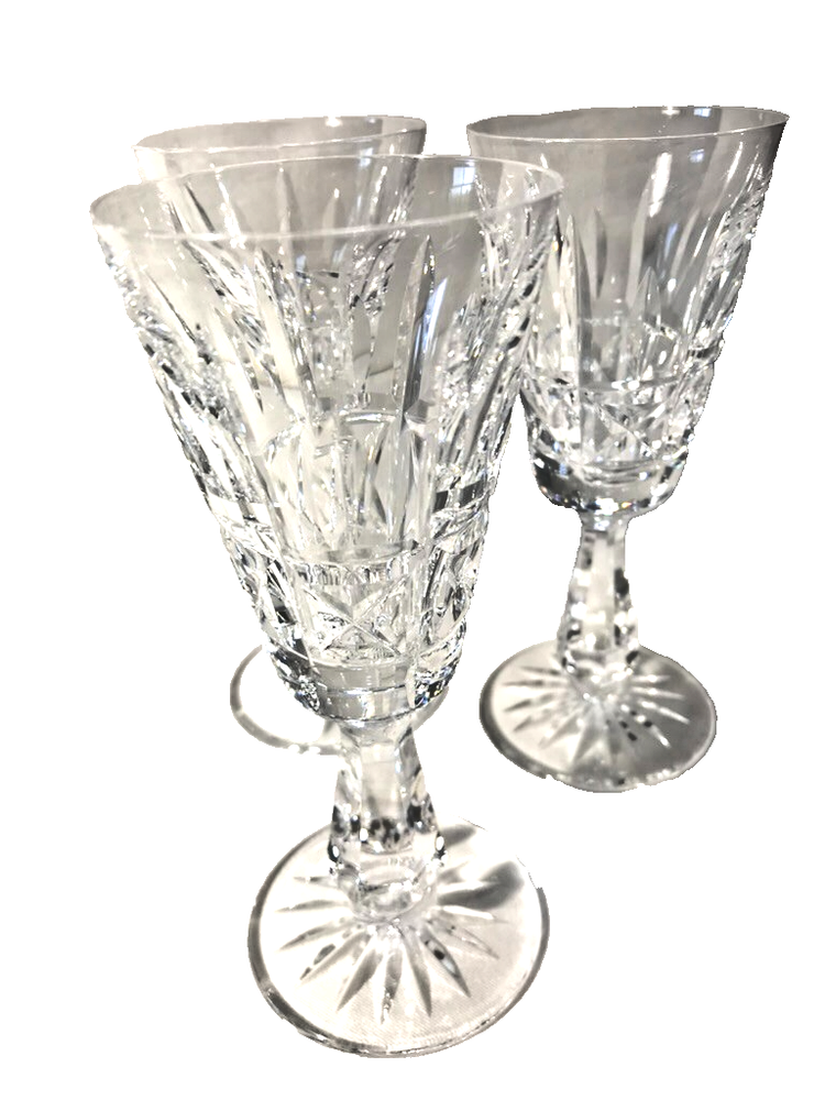 This set of three Waterford Crystal Port Wine Glasses features a round, clear design with a glossy finish. Made in Ireland, the wine glasses stand at 5 3/4 inches tall with a diameter of 2 1/4 inches. The Waterford brand ensures quality and authenticity, making these wine glasses perfect for all occasions and adding a touch of elegance to any table setting. Each glass weighs 6.1 ounces and is beautifully crafted from crystal, adding a touch of sophistication to your drinkware collection.