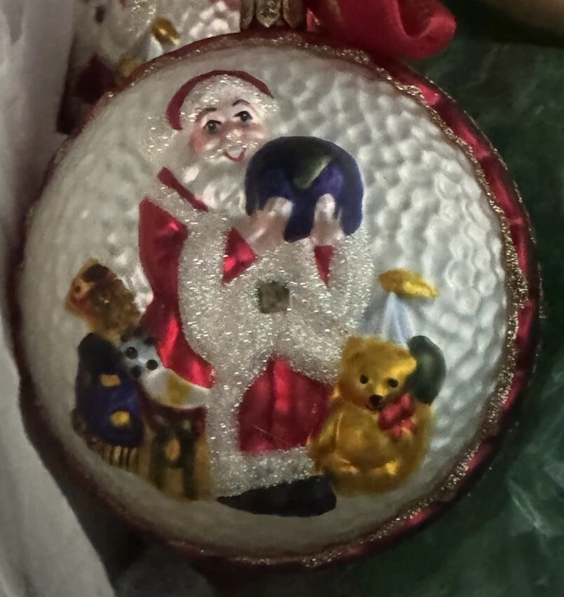 WATERFORD FTD Ornament with Santa and Globe 2 sided ornament I put a soda can next to it to help you judge its size It has a little wear but overall good condition as you can see I have 3 available and you will receive of shown Please See Pictures