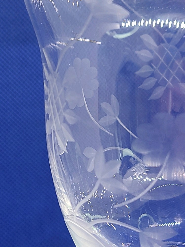Elevate your dining experience with the Waterford Great Room Crystal Chamomile Etched Water Goblets. This set of four exquisite pieces, crafted in 2004, brings a touch of elegance to any table setting. The intricate chamomile etching adds a delicate floral motif that is sure to impress your guests and make every sip a memorable occasion. The clear glass material of these goblets allows you to view your water or beverage effortlessly, making it a practical as well as stylish choice for your drinkware collection. As a vintage set from the renowned brand Waterford, they reflect a timeless design and quality craftsmanship. Perfect for special events or everyday use, these water goblets are a must-have for those who appreciate fine crystal glassware.