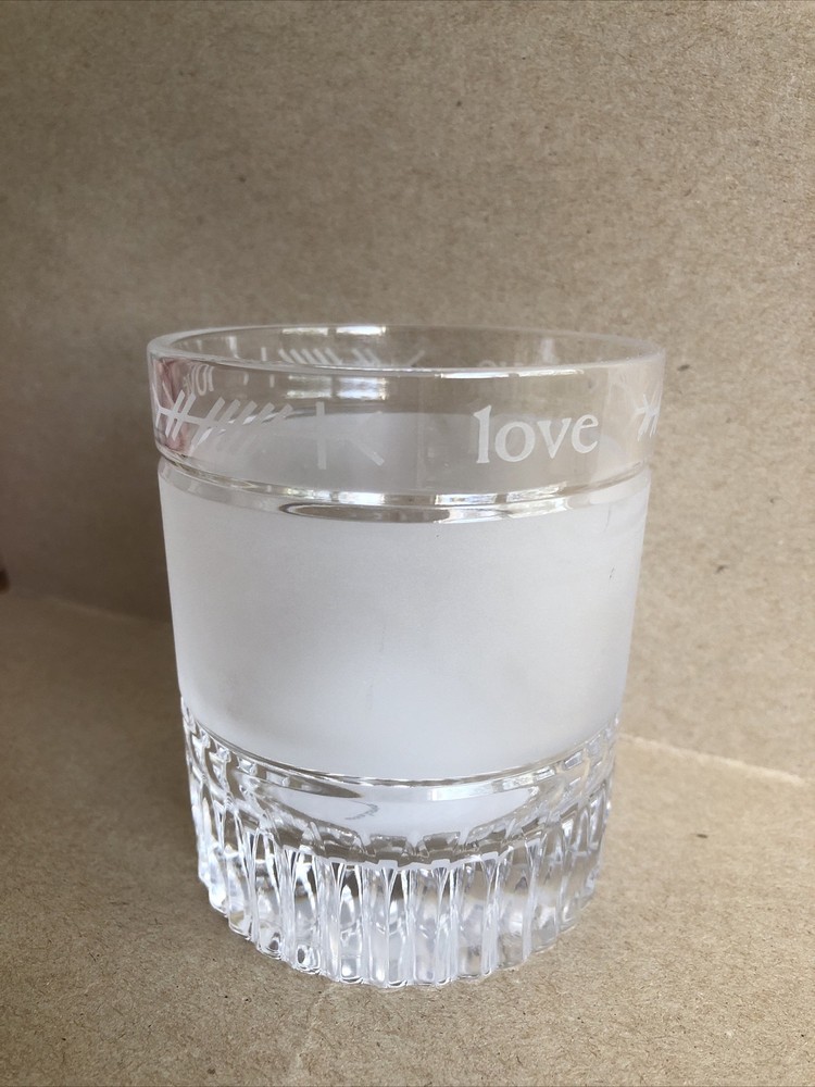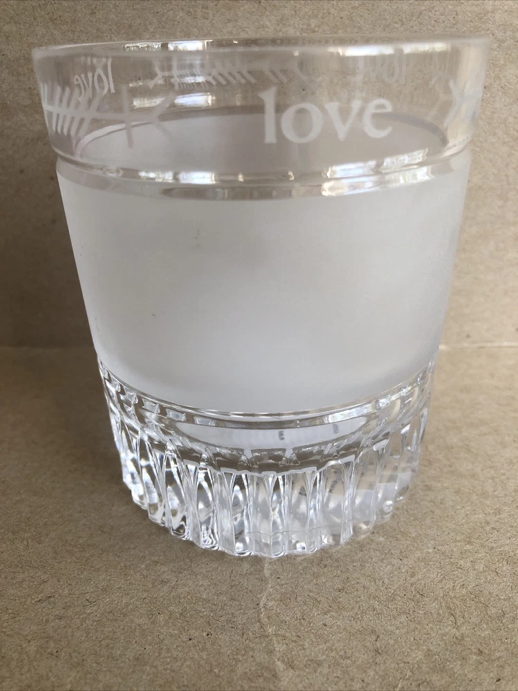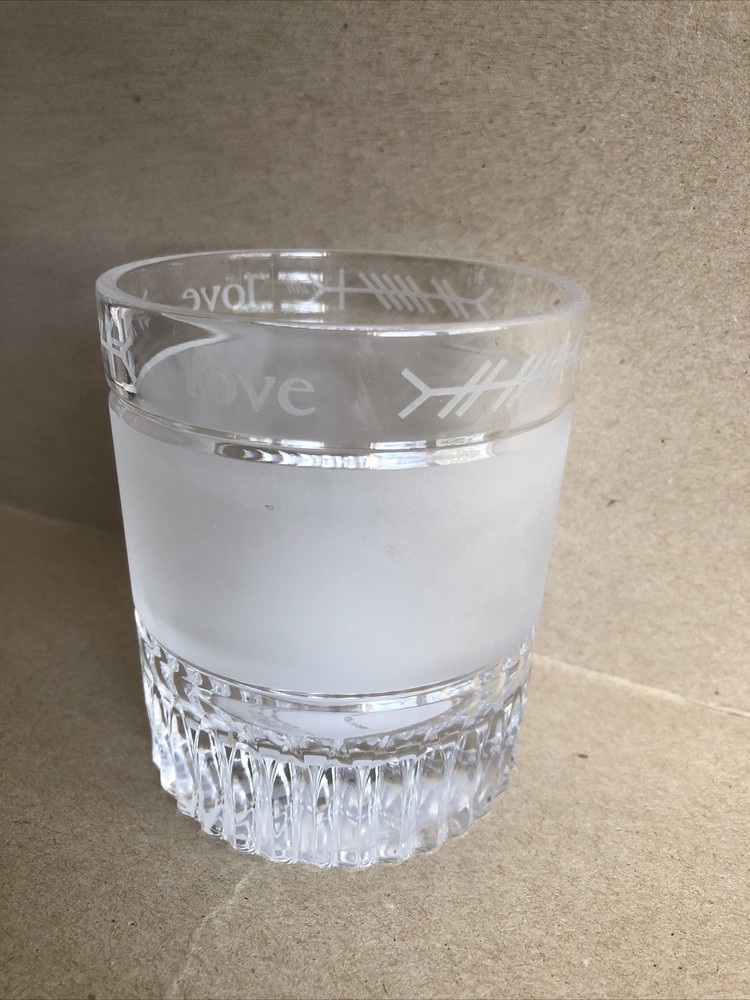 Add a touch of holiday cheer to your home decor with this beautiful Waterford crystal candle holder. Perfect for any season, this round, medium-sized piece features a LOVE holiday theme etched into the clear glass. The item stands at 4 inches tall with a width of 3.25 inches and weighs 1 lb. 1.4 oz. Made from high-quality materials, this decorative piece will enhance any room it is placed in. Ideal for use as a centerpiece or accent decoration. Candle holder only, no candle included. See photos.