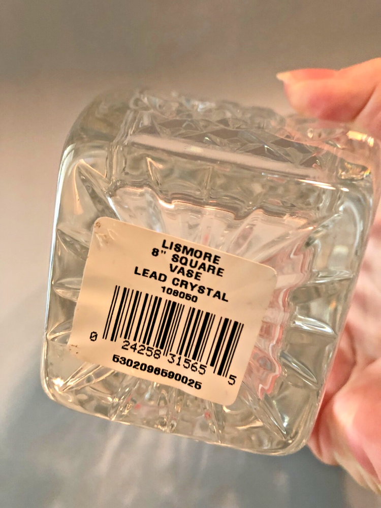 The Waterford Lismore Crystal Vase is a stunning piece measuring 8 inches in height, made of clear crystal with a beautiful diamond pattern design. This elegant vase is crafted in the Waterford Lismore Crystal model, showcasing intricate cut glass work that adds a touch of luxury to any space. Perfect for displaying flowers or as a standalone decorative piece, this vase is sure to enhance the beauty of any room with its exquisite craftsmanship and timeless design.