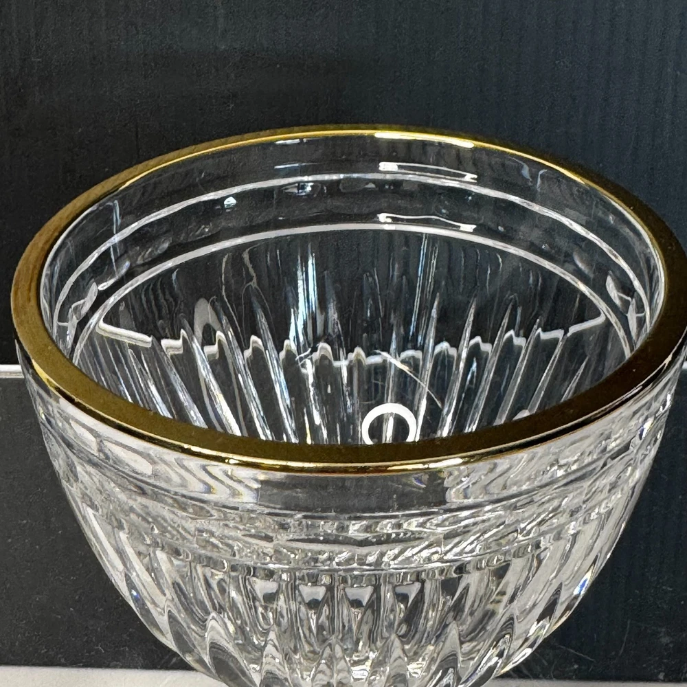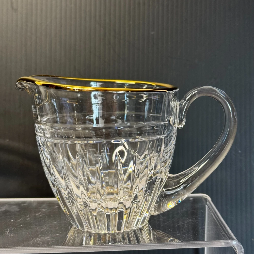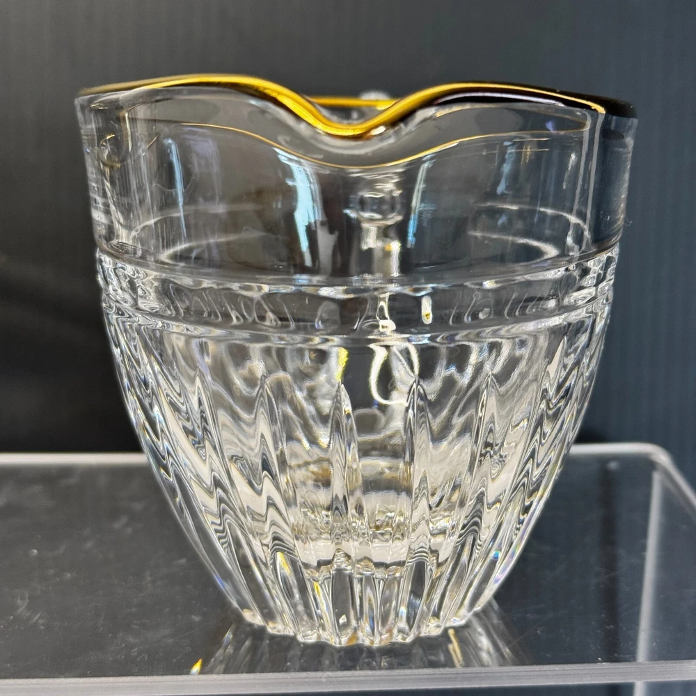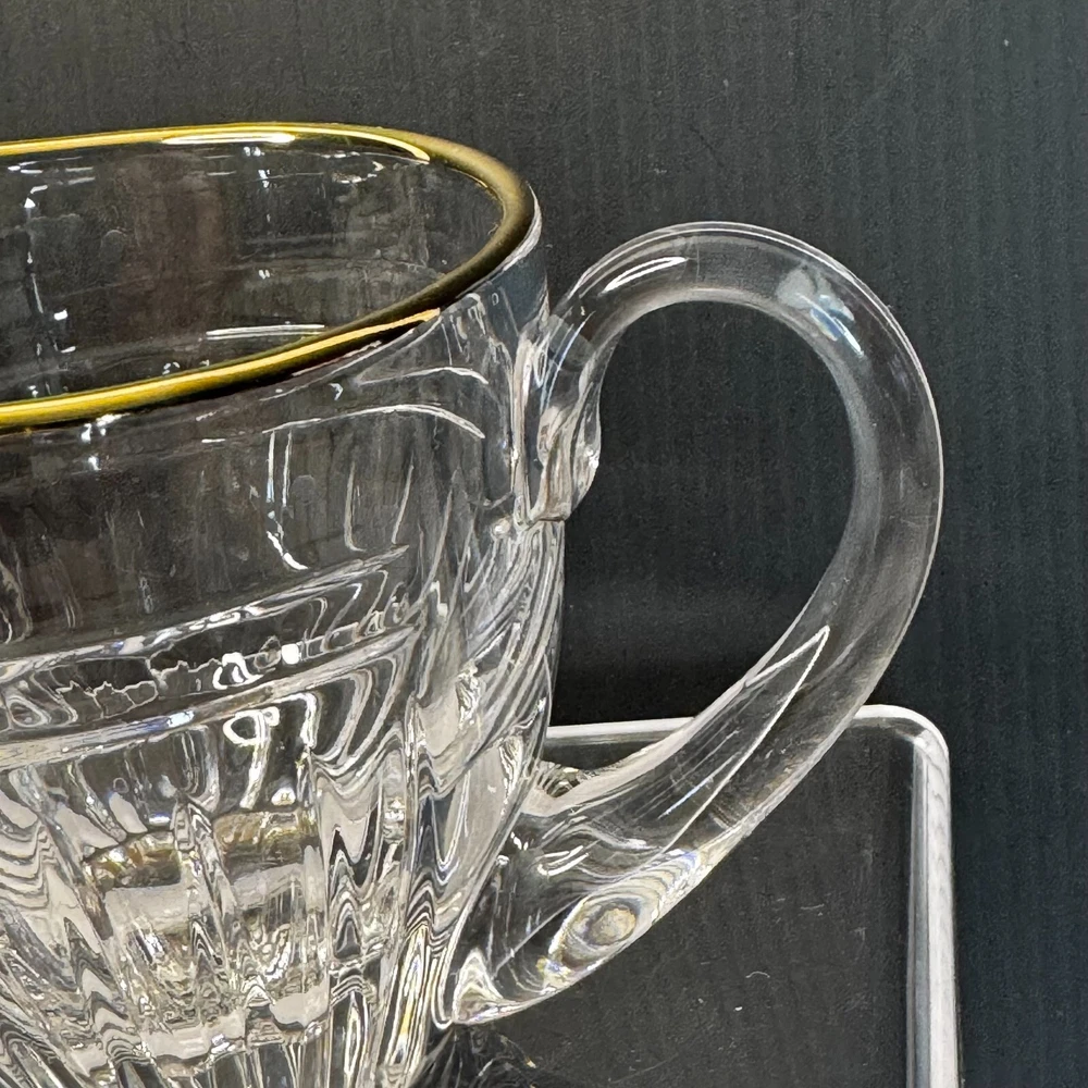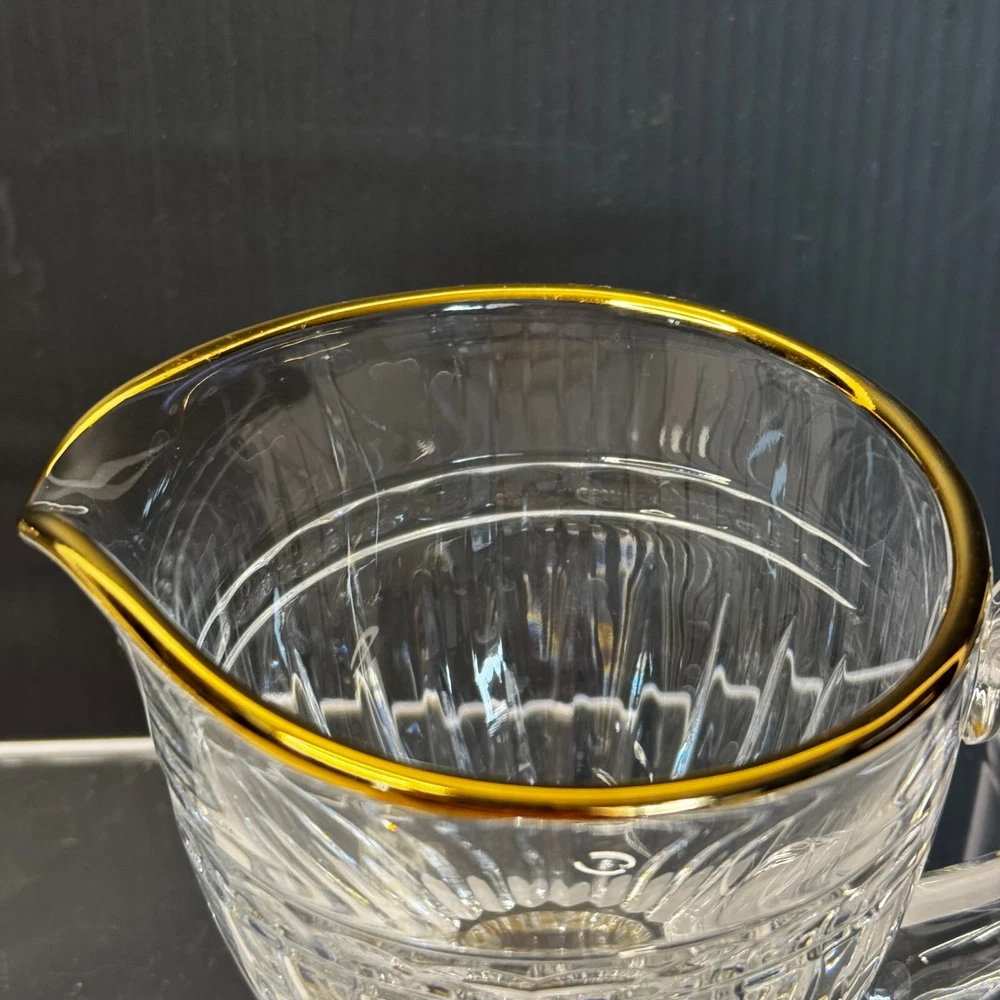 Waterford Marquis Clear Glass Gold Trim Creamer and Open Sugar Bowl Set Signed. Pre-owned item in great condition, has some wear as you'd expect from a used item. No cracks or chips noted. Elegant table presentation.Please use the zoom feature to determine shape and condition, check all pictures and measurements carefully for detailed viewing as they are part of the description and help you with your purchase. I invite you to always check my new listings, buy with confidence. Smoke free home. Thank you, have a wonderful day!! W - 82