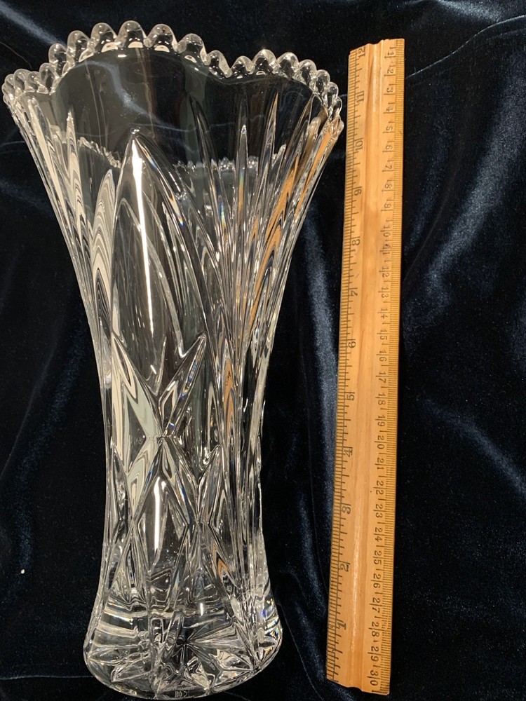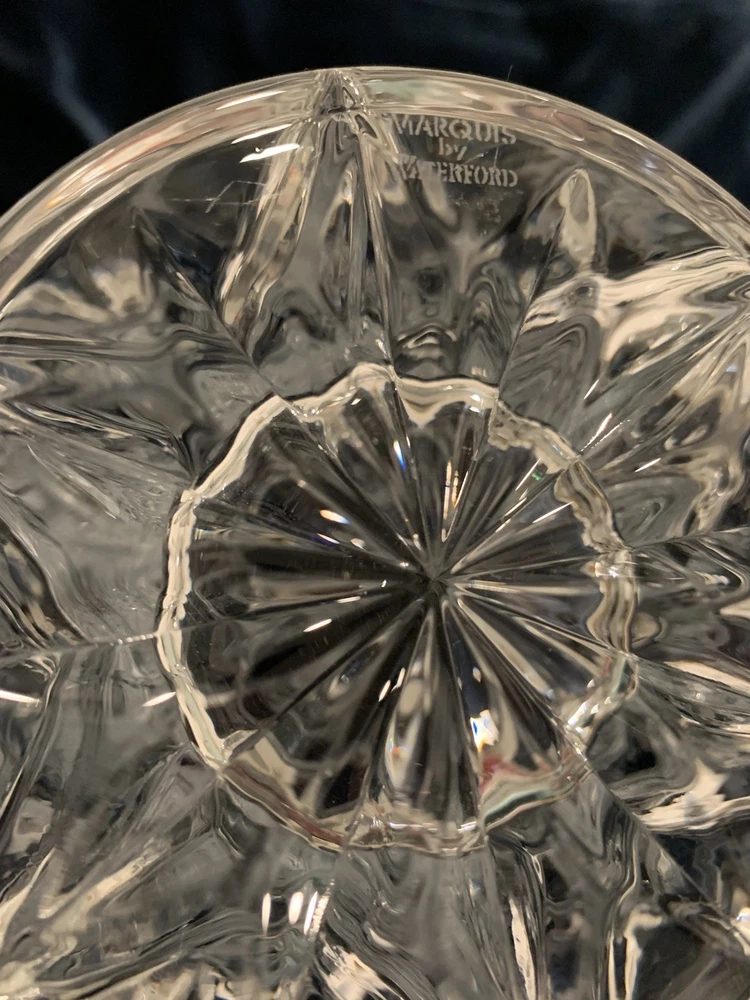 The Waterford "Marquis" Crystal 11" Vase is a luxurious and elegant piece that exudes tradition and romance. This vintage 1990s vase features a round shape, etched crystal design, and is signed by Waterford, making it a prestigious addition to any collection. Standing at 11 inches tall and 5 inches wide, this large vase is perfect for special occasions like weddings, Bridal Showers, Anniversaries, Birthdays, reflecting the theme of royalty and sophistication. “Marquis” by Waterford, this original piece from the late 20th century is a timeless and exquisite decorative collectible. Selling by original owner. Not original box.