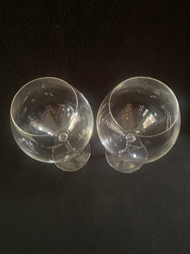 Set of 2 Marquis by Waterford beautiful balloon red wine glasses. I lovely condition. Add a touch of elegance to your wine experience with this Waterford Marquis Crystal set of two Balloon Wine Glasses. Crafted in Austria, these glasses are handmade and feature a contemporary style that is perfect for any occasion. The glasses have a capacity of 24 oz. and stand at 8.75 inches tall, with a diameter of 3 inches. The glasses are signed by Waterford and have a backstamp that is impressed into the crystal. They are a vintage item, but still in excellent condition. Whether you're a wine enthusiast or just looking for a special gift, these Waterford Marquis Crystal Balloon Wine Glasses are the perfect addition to your collection.
