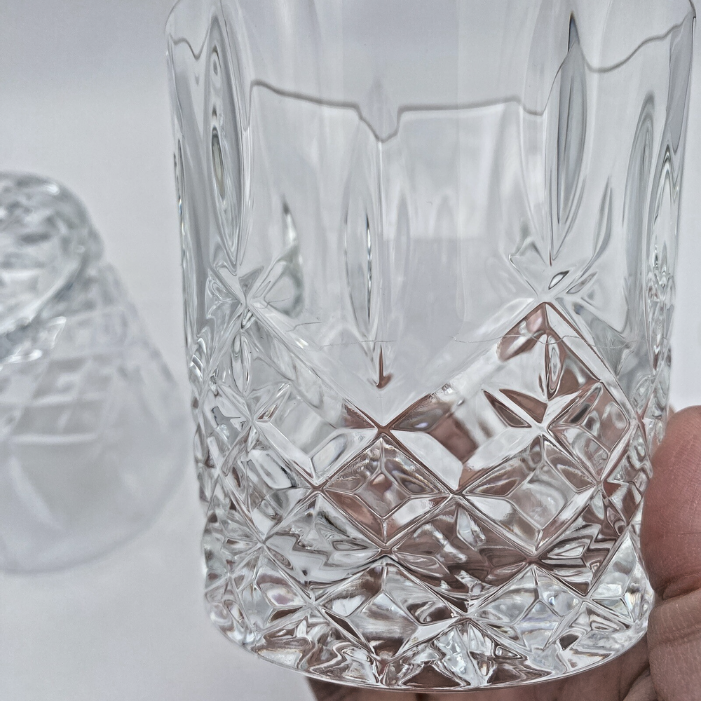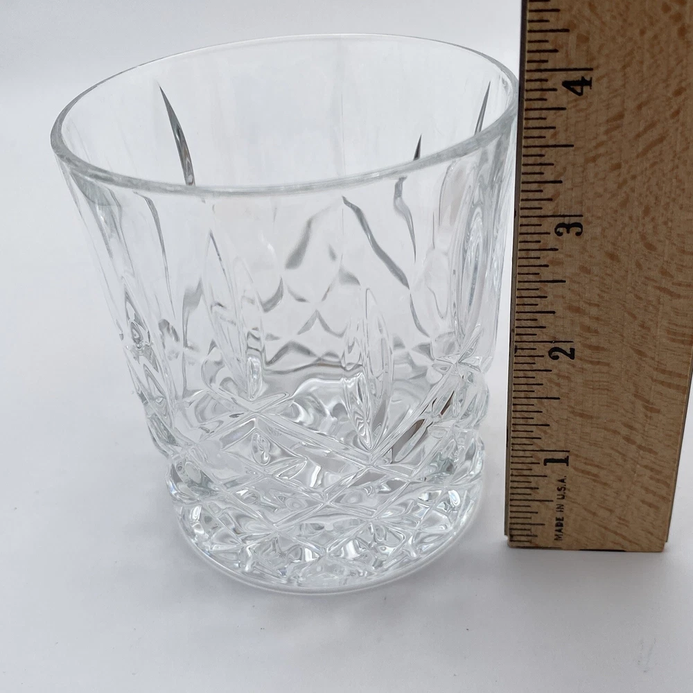 Approximately: 3 5/8" H and 3 3/8" W. Holds about 11 oz. Both glasses have dull scratches as shown in photos. In very good condition otherwise. All are etched on the bottom edge with Marquis by Waterford. Ships by USPS Ground Advantage. Waterford Marquis Double Old Fashioned Glasses Tumblers Whiskey Markham Set of 2 - FLAW Approximately: 3 5/8" H and 3 3/8" W. Holds about 11 oz. Both glasses have dull scratches as shown in photos. In very good condition otherwise. All are etched on the bottom edge with Marquis by Waterford . Ships by USPS Ground Advantage.