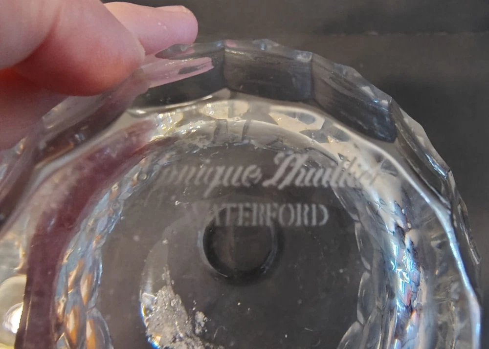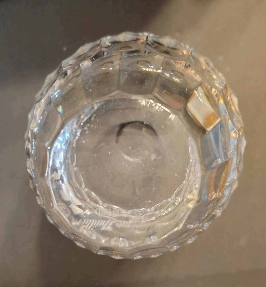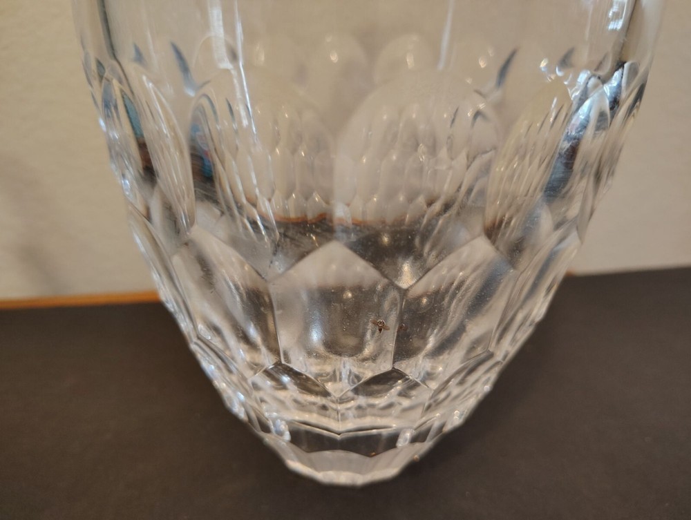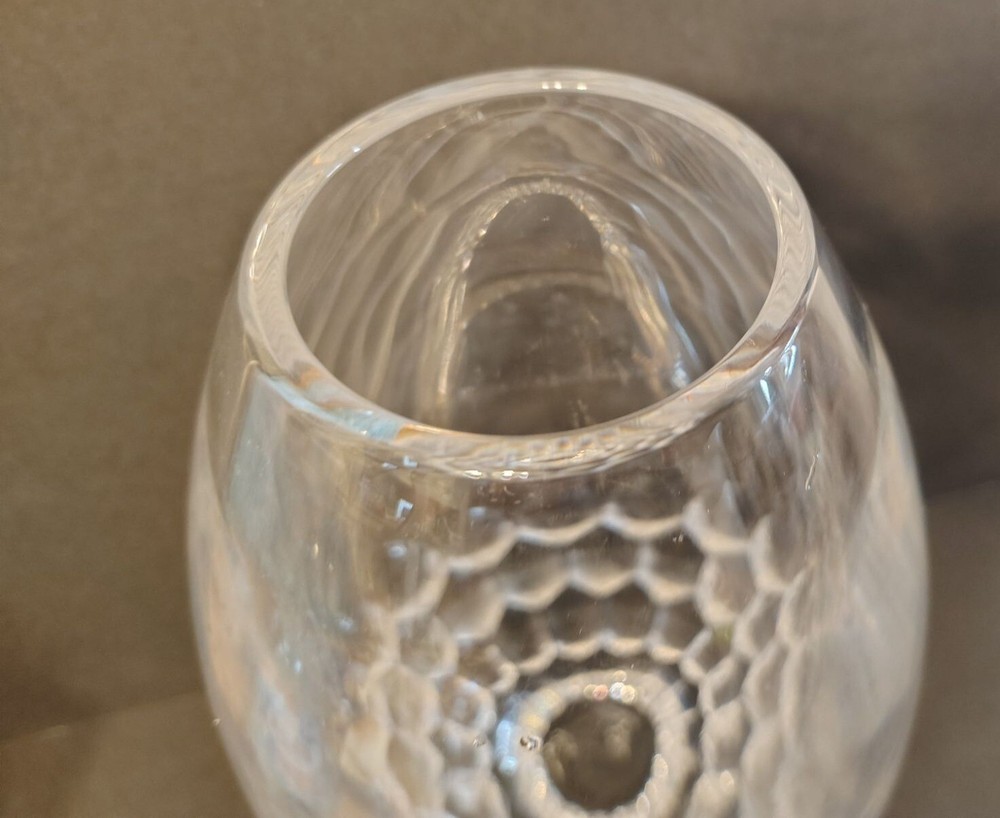 This elegant Waterford Monique Lhuillier Crystal Flower Vase Atelier features a signed design and is crafted from heavy crystal, perfect for enhancing any home decor with sophistication. It measures 11" in height, 2.5" in diameter at the mouth and 17.5" in circumference at its thickest. No chips or cracks but some calcium on the inside. Please see all photographs as they are part of the description. Shipped with USPS Ground Mail.