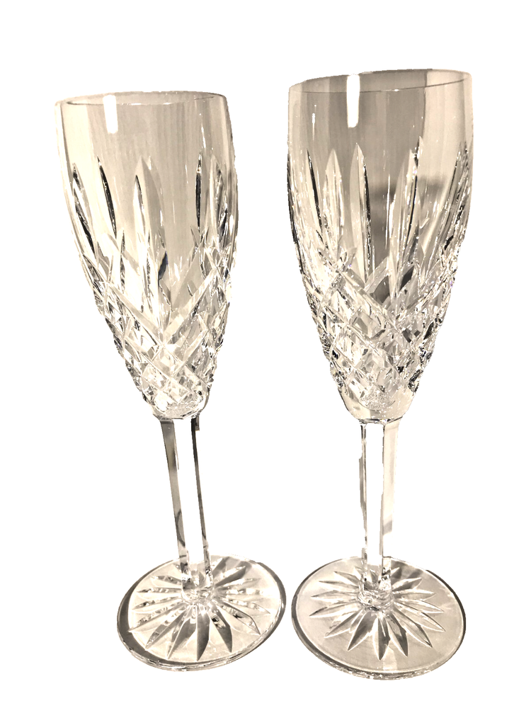 Waterford Shaftesbury Crystal Champagne Flutes Set of 2 Elegant Stemware