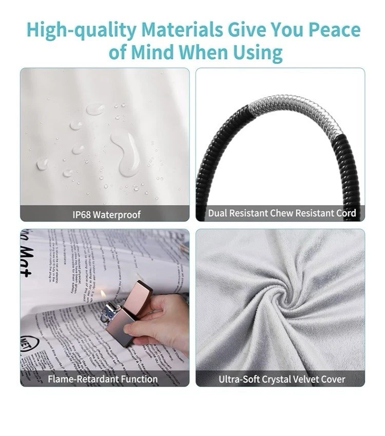 The Toozey Pet Heating Pad is an adjustable temperature timer designed to keep your large dog warm and cozy. Made with waterproof cloth material, it is portable and suitable for all dog breeds. The electric heating element ensures your furry friend stays comfortable, while the anti-bite cord adds an extra layer of security. Ideal for pet owners looking to provide a safe and comfortable heating solution for their canine companions.