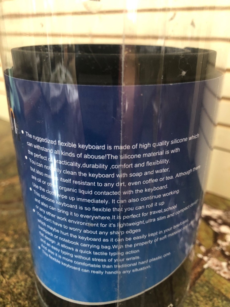 Waterproof Bluetooth mini flexible keyboard. USB. Dust proof, washable. See photos for operation system requirements. Black. New, opened package. $25
