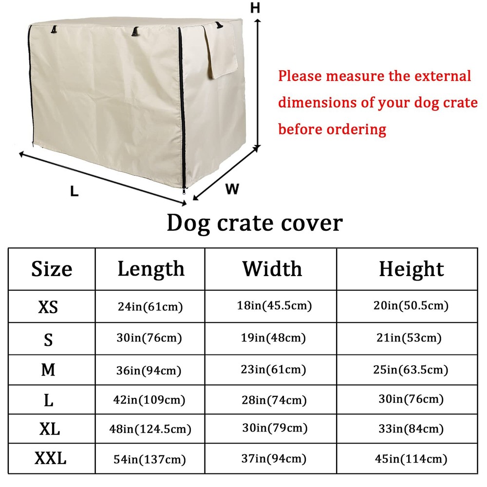 Welcome to Our Store! Quality Products, Satisfaction is what we guarantee. Double Door Dog Crate Cover Wire Dog Cage Cover Waterproof Durable Lightweight 420D Polyester Pet Kennel Cover Indoor Outdoor Protection Cage Covers for Dog Crates Beige 42 inches Product Images Product Details Key Features Beige, The L size of the dog crate cover is 42in x 28in x 30in (109 x 74 x 76cm). Please measure your dog crate before order. DURABLE MATERIAL: The dog crate cover is made of durable polyester with silver coated in the inner walls, practical, water-resistant and windproof, also can block some direct sun. Our material is also environmentally friendly, non-toxic. DOG CRATE COVER: Lightweight & breathable fabric with door zipper can create a private "den" environment, make your dog feel cozy, safe and secure, reducing the dog's anxious behaviors barking and chewing. ROLL-UP WINDOW DESIGN: Has window on the left of dog cage cover provide proper air circulation and visibility that allows your dog to breathe freely. TWO DOORS DESIGN: Two entrances design on the left and front, allows it to be used with most 1 or 2 door crates on the market, so you can choose the direction of opening the door according to your needs. It can provide ventilation and wide view. We appreciate your business! Contact Us 📧 If you have any questions, feel free to reach out via the eBay messaging system. We respond to all inquiries within 24 hours. Payment Information 💳 We accept PayPal, credit cards, and other payment methods supported by eBay. Please ensure your payment information is current to avoid delays. Shipping Information We ship to the address on your eBay account. Please confirm your address before completing the purchase. Delivery times are typically 3-5 business days. If there are delays, please allow an extra 1-2 business days due to postal service issues or technical problems. We use trusted shipping services like UPS, FedEx, and USPS. Shipping is available to the contiguous 48 states only. We do not ship to Alaska, Hawaii, US territories, APO/FPO addresses, or PO Boxes. Local pickups are not available. For any issues with delivery, please contact us promptly. Feedback 🌟 We value your feedback and strive to earn your trust. If you're not satisfied with your purchase, please contact us and we'll work to resolve the issue. Return Policy - We offer a 30-day money-back guarantee. - If the item is defective or you are not satisfied, contact us for a replacement or refund. - All returns must be sent to the address provided upon contacting us.