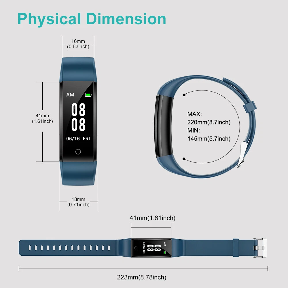Step, Calorie & Distance Counter The fitness tracker can track your all-day steps, calories burned and distance. With it, you will become more active and walk more steps everyday. It will be an important everyday health reference. Sleep Tracker It is essential for us to keep a regular work and rest schedule. This tracker can record your sleep time. This function can help know better about your body and make reasonable adjustment on your sleep. A Good Gift Really friendly for the elderly and others who don't use a smart phone. This tracker can remind them to keep motivated and walk more. The weight is about 18g, which is very comfortable to wear this fitness tracker. This pedometer watch is a very good gift choice for the elderly and children, as it is simple and can work without a phone, also very light and comfortable to wear. IP67 Waterproof With IP67 water-resistance, this fitness tracker can be worn while swimming, washing your hand and will not damaged by the sweat. (Note: Not suitable for diving, taking a shower, or sauna.) Simple to Set up and Use Please set the date, time, gender, age and so on in the watch first. Tap the circle touch button once to cycle through the menu and change options in the settings. Press and hold the touch button (3 seconds) to go to next screen or save the settings. (Note: If you miss the correct number, you need to add the number to the max. Then begin again.) 5-7 Days Battery Life This fitness tracker can be used for up to 5-7 days and standby for 30 days after fully charged. It will help you get rid of the annoyance brought on by charging everyday. But it doesn't come with the charger. You need take out the watch from the wristband, then you will find the USB metal pin, just plug it into the USB port to charge. Customer service If you have any questions, please feel free to contact us we will give buyers positive feedback after shipping. If you are dissatisfied with a transaction for any reason. Before taking any action, please contact us through eBay first and we will do everything we can to help you!