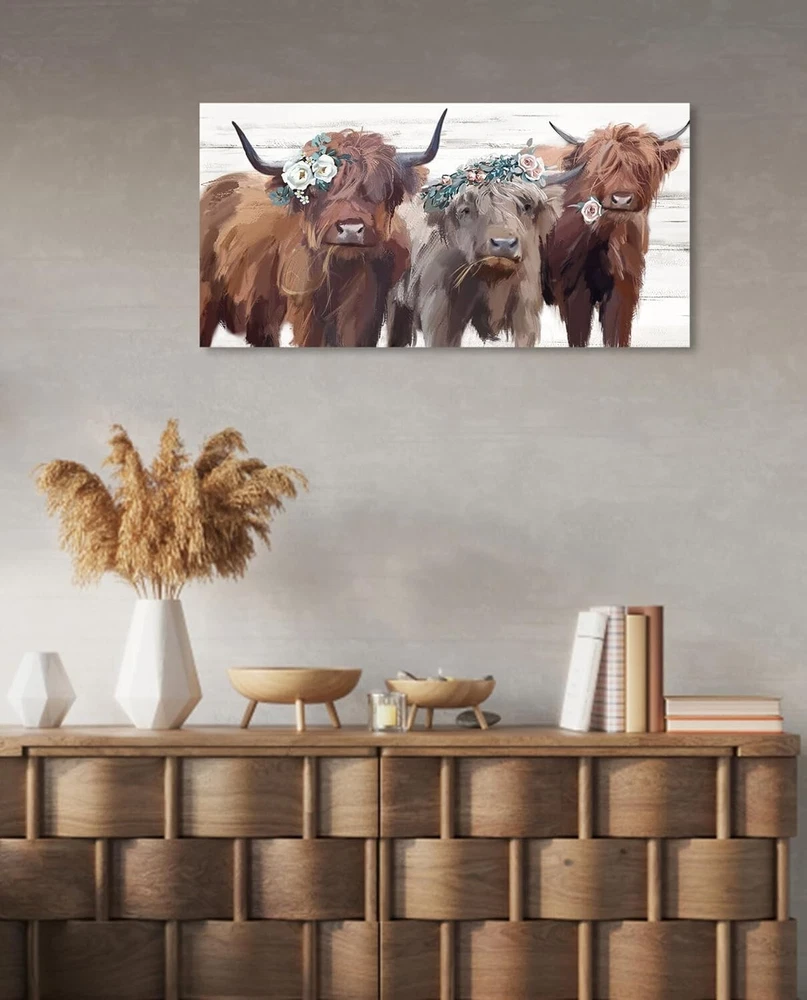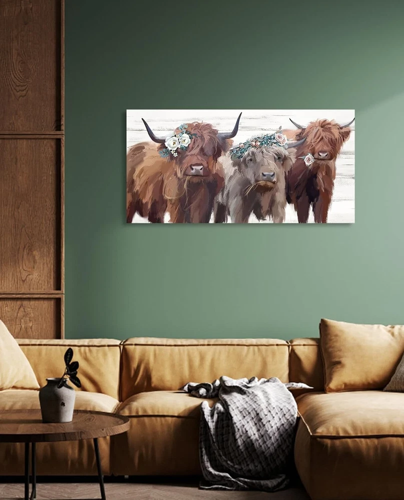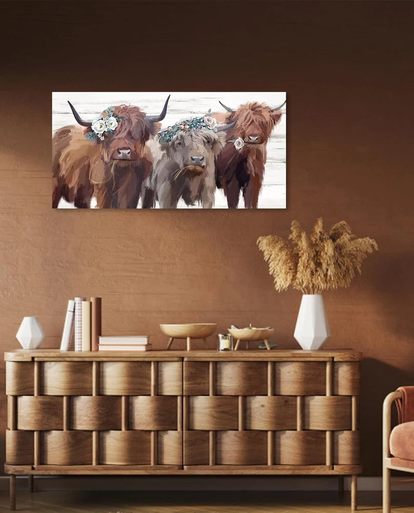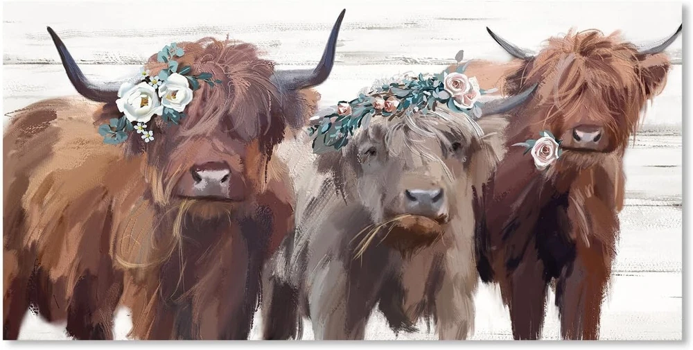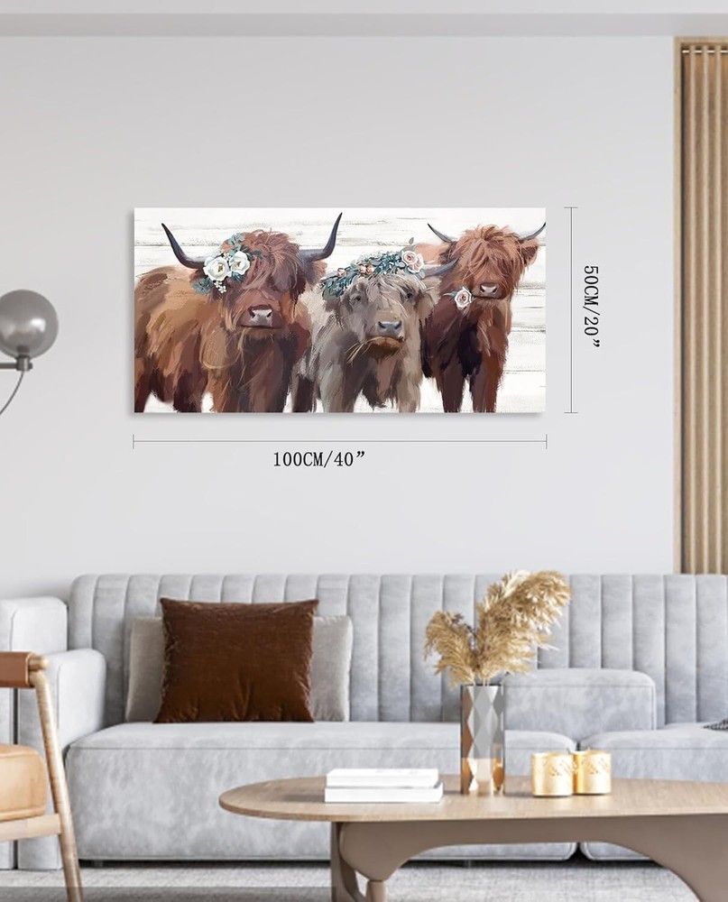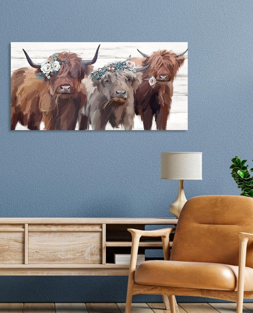 Waterproof Highland Cow Wall Art 20x40 Farmhouse Canvas Painting Decor