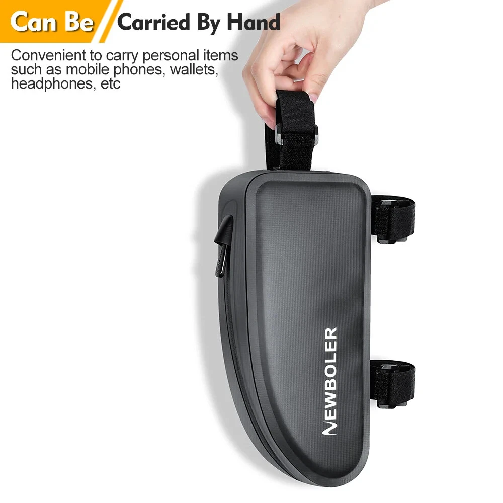 Product Details Condition: Brand new Size: approximately 23.5 * 6.5 * 10.5cm Color: Black Weight: approximately 90 grams Material: 840D nylon+TPU waterproof coating Product features Zip closure Large capacity: This bicycle frame bag is a large storage room, which can hold your mobile phone, wallet, keys, gloves, small tools, energy sticks, gel, nutrition or additional garbage. External elasticity is easy to install: it can be quickly disassembled and installed, and the long strap can be easily cut. The smooth zipper on the bag makes it easier to open and close with one hand while cycling, allowing for quick access to everything you need.
