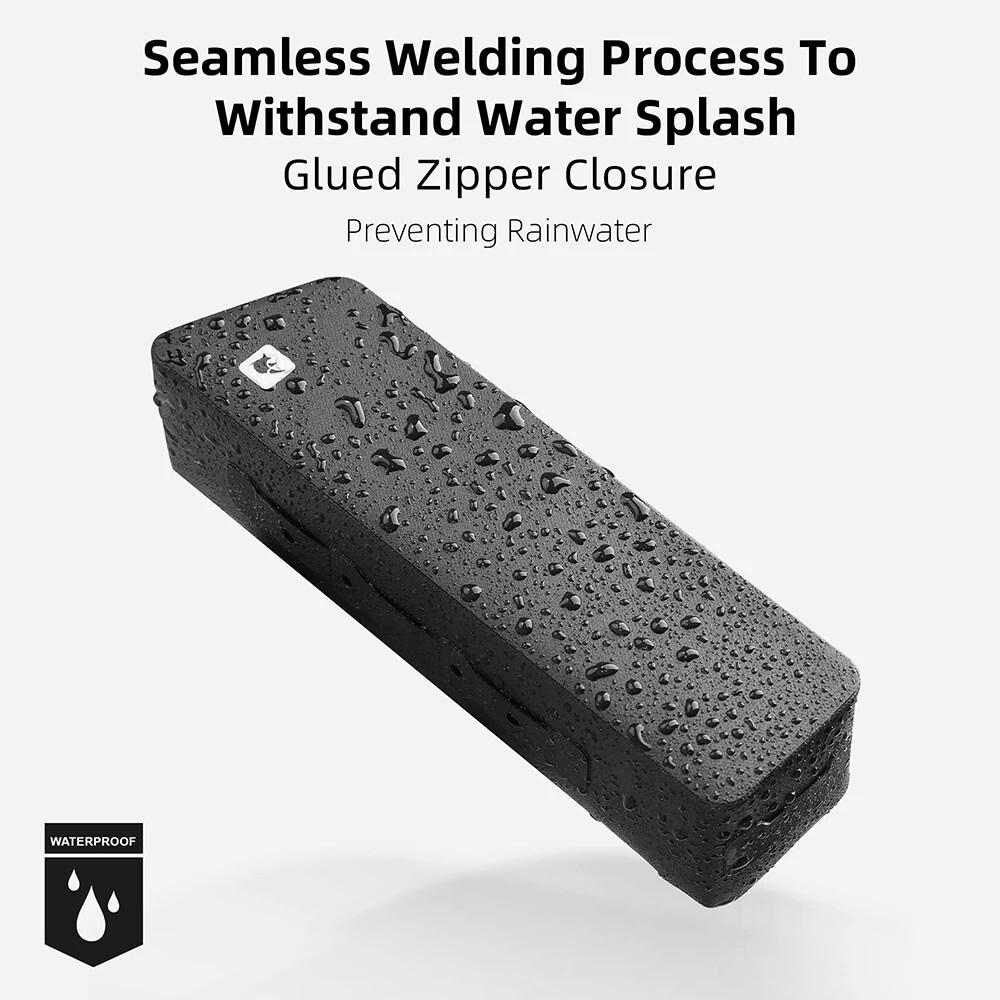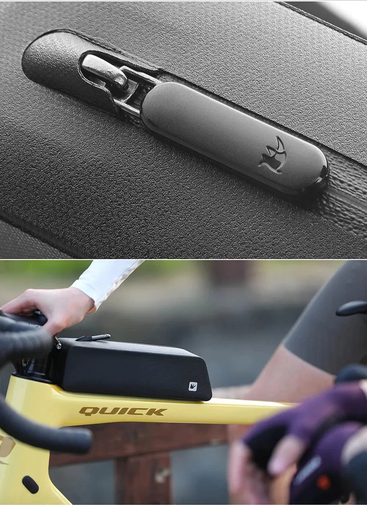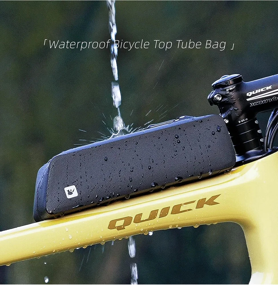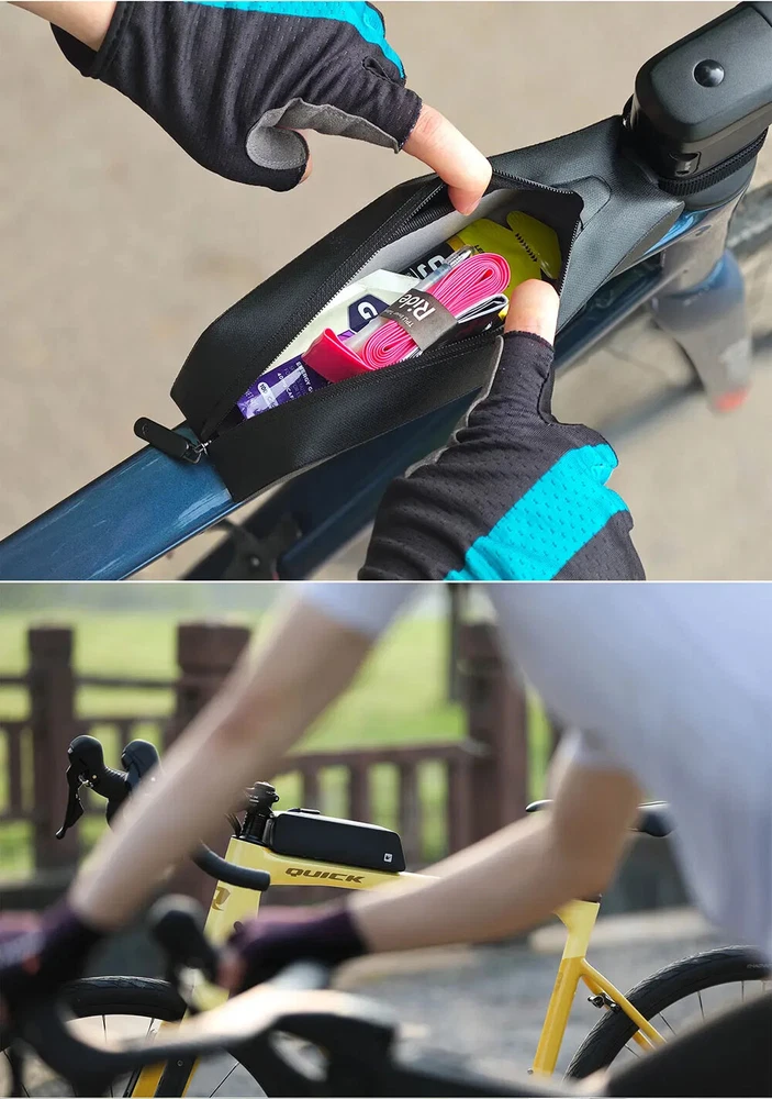 NAME:Waterproof Bicycle Top Tube Bag ITEM:K34 FABRIC:TPU WEIGHT:152g COLOR:Black SIZE:22cm*5.5cm*5.8cm(L*W*H) ACCESSORIES:Bag*1/ Velcro Straps*3/ Screws*4/ Spacers*8 Waterproof Process: Utilizes seamless welding and waterproof TPU fabric material to prevent rainwater infiltration effectively. Strap Fixing: Installed securely with three straps on the frame for easy installation, quick release, and effortless removal. Screw Fastening: The frame is firmly secured with screws, ensuring easy dismantling and fastening without any shaking. Wind-breaking Shape: Designed with a wind-breaking shape to prevent interference with the rider's legs and reduce wind resistance. Lightweight and Sturdy: Features internal hard shell support for a three-dimensional and sturdy structure, with a net weight of about 152g.