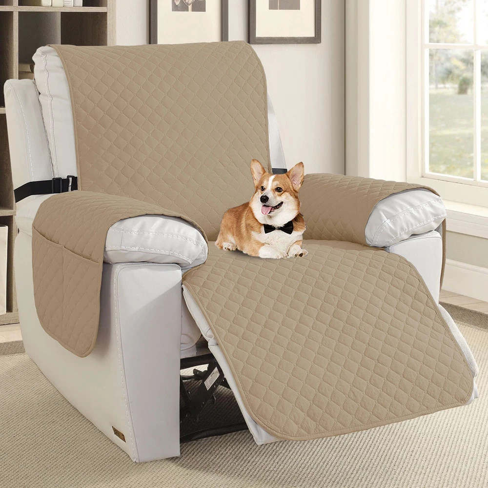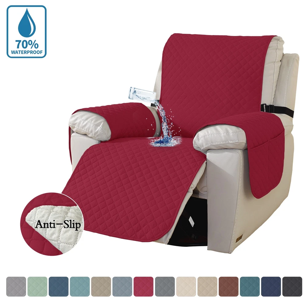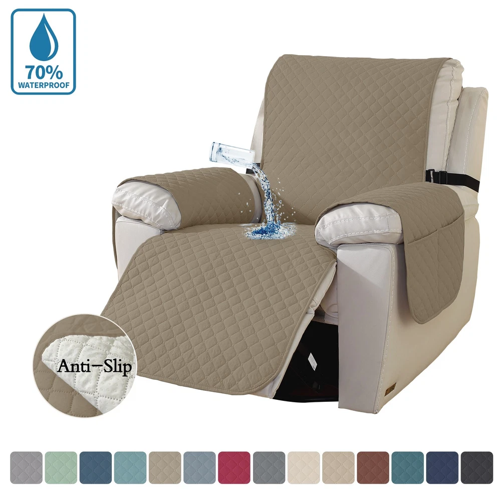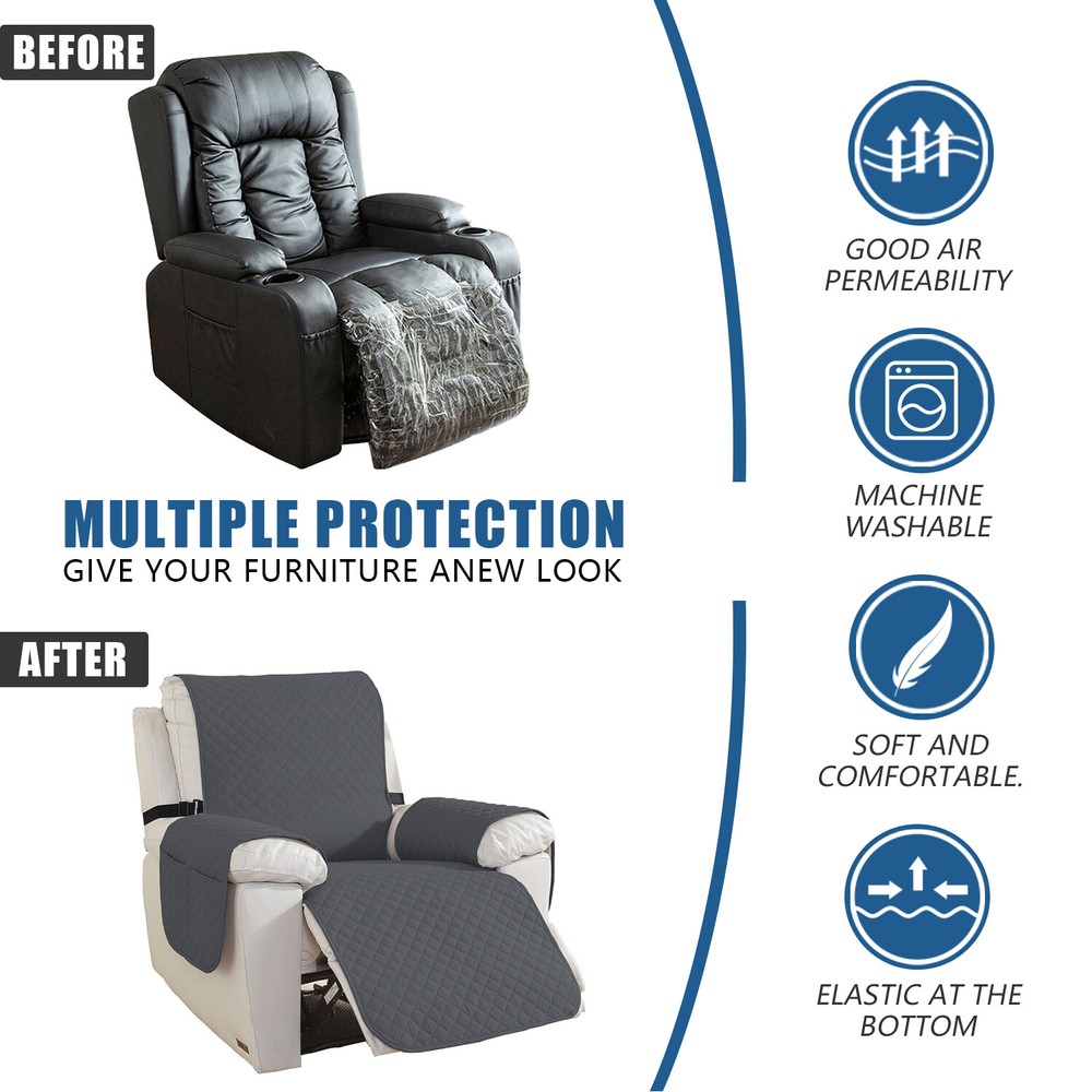 COMFORTABLE FABRIC: This recliner cover is made of high-quality fabric, which is comfortable and does not irritate the skin. This recliner cover fits recliner sofas with a recliner width of 23 inches, please measure your sofa before purchasing. Anti-slip design: There are anti-slip rubber particles on the back of the recliner cover, which increases friction and is not easy to fall off. And the recliner cover has an elastic straps, which can fix the recliner cover to the recliner nicely. The head and arm lengths of the recliner cover have also been extended. PROTECT YOUR RECLINER: This recliner cover is made of 100% waterproof fabric, perfect for protection from splashes, pet fur, normal wear and tear or any possible accident. It protects your recliner well and gives your old recliner a new look. EASY INSTALLATION: This recliner cover is easy to install and takes less time. Simply drape the recliner cover over the recliner, tie the elastic straps, and tuck any extra fabric into the gap. You can install it very well. EASY CARE: This recliner cover is directly machine washable and tumble dry. Please wash at around 30 degrees Celsius. Do not bleach. Do not iron.