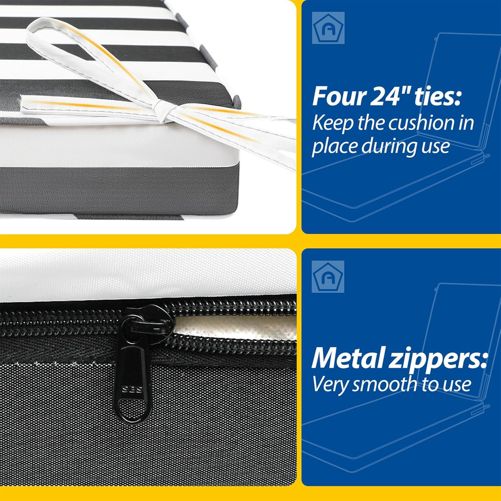 Store New Arrivals Add to Favorite View Feedback Contact Outdoor Chaise Lounge Cushions for Patio Furniture Lounge Chairs, Waterproof Fabric, 74 X 23 X 3 Inch, Gray Cabana Stripe Description Unit Count 1.0 Count Number of Items 1 Color Gray Cabana Stripe Pattern Striped Product Dimensions 74"L x 23"W Country of Origin China Shape Rectangular Item Weight 8.64 pounds Pillow Type Furniture Cushion Fill Material Foam Age Range (Description) Adult Size 1 Count-74 in L x 23 in W x 3 in T Special Feature Water-Resistant, Waterproof, Fade-Resistant, UV-Resistant Cover Material Polyester About Size: Seat: 46L×23W×3H inches, Backrest: 28L×23H×3T inches (dimensional tolerance: 1'' ). To get the right outdoor chaise lounge cushion, please measure the seat size of your outdoor furniture before ordering. Compressed and packed in a roll, the cushion foam inserts may come to you a bit bigger and thinner than their normal sizes after you unpack them. Please allow several days for them to rebound back or pluff them up faster by evenly moving a hair dryer around them for several minutes Waterproof and Removable Cover: Made of sturdy, breathable polyester fabric with a waterproof coating, the cushion cover is UV-protected and fade-resistant, providing you with a comfortable outdoor experience. The removable cover features a zipper for easy cleaning and replacement. The zippers are covered and invisible, so you don't need to worry about them affecting the appearance or functionality Upgraded Cushion Foam: The thicker powder-free high-resilience foam can quickly regain to its original shape after sitting for a long time and provide you with soft and comfortable using experience. This can not only effectively relieve the pressure on your body and enhance your comfort, but also make the chaise cushions more durable after long-term use Non-slip Ties and Piped Edge: The four non-slip ties can be fastened to your furniture to keep the outdoor cushion in place. Some seams are finished with piping, which reinforces the edges and makes the outdoor furniture cushion more stylish Wide Use & Some Tips : The outdoor lounge chair cushions can be used on your chaise lounges in various outside spaces like the pool, patio, balcony, deck, backyard and gazebo. Some tips: the foam inserts and the covers will be separately packed in bags and then put together in one box so please check carefully if they are all included in the box. Easy assembly will be required. If you need any help, please contact our customer service staff first Product Description AAAAAcessories cushions in different sizes and colors Add to Cart Add to Cart Add to Cart Add to Cart Add to Cart Add to Cart Add to Cart Customer Reviews 4.5 out of 5 stars 243 4.4 out of 5 stars 671 4.7 out of 5 stars 26 4.6 out of 5 stars 75 4.5 out of 5 stars 306 4.5 out of 5 stars 58 4.7 out of 5 stars 21 Price $84.99 $ 84 . 99 $114.99 $ 114 . 99 $128.99 $ 128 . 99 $118.99 $ 118 . 99 $49.99 $ 49 . 99 $49.99 $ 49 . 99 $44.99 $ 44 . 99 Size 72 x 21 x 3 24 x 24 x 5 + 24 x 19 24 x 24 x 5 + 24 x 19 x 4 25.5 x 25.5 x 5 + 25.5 x 13.5 19 x 19 x 3 20 x 20 x 3 + 20 x 24 x 3 42 x 18 x 3 Waterproof ✔ ✔ ✔ ✔ ✔ ✔ ✔ Fadeproof ✔ ✔ ✔ ✔ ✔ ✔ ✔ Ties 4 Ties 2 Ties 2 Ties 2 Removable Ties 2 Removable Ties 4 Ties 2 Ties Rolled edge ✔ ✔ ✔ ✔ ✘ ✘ ✔ Non-slip Bottom ✘ ✘ ✘ ✔ ✔ ✔ ✘ ABOUT US We offer the best prices around on high quality products. Our E-store includes media such as books, movies, music and games while offering electronics, toys, sporting apparel, clothing, tools, general home, garden items and more. SHIPPING We are always working hard to ensure your package arrives as soon as possible. Please understand that some factors like weather, high postal traffic, and the performance of shipping companies are outside of our control. We offer free shipping to the lower 48 states and ship within 2 business days of payment, usually sooner. We do not accept P.O. Boxes. Please provide a physical address. For shipping outside of the continental USA, we only use eBay's Global Shipping Program.The item is shipped to KY and then sent to the rest of the world. International customers are responsible for all duties and taxes. Continue to check out in order to calculate costs for shipping the item to your country. Messages regarding eBay's Global Shipping Program MUST be directed at eBay EXCLUSIVELY. RETURNS We offer a 30-Day Return Policy on items which you are not completely satisfied with. You have the option for a full-refund or an exchange of the item. No returns are available on items shipped outside of the USA. PAYMENT We accept PayPal. CONTACT US This page content is yet to come Please ad us to your favorite seller and visit again later Thank You CUSTOMER SATISFACTION We try our very best to make sure every customer is completely satisfied. If there's a problem, message us! We're happy to help. WE ACCEPT Copyright © 2021 AutoDS. | All Rights Reserved