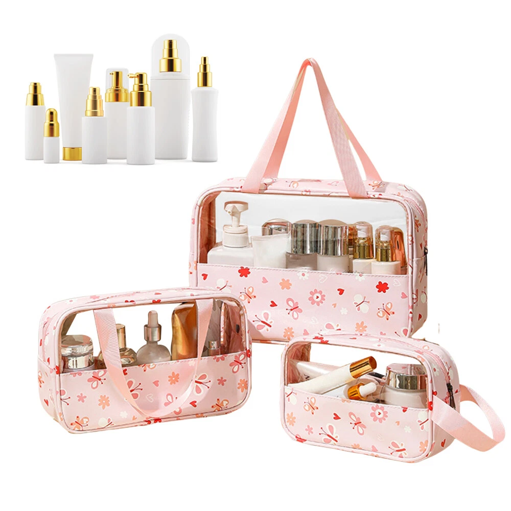 Features: Versatile Clear Cosmetic Bag: This 3-piece set includes a portable makeup bag, skincare wash bag, and large capacity beauty organizer, ideal for storing cosmetics, toiletries, and skincare essentials on the go. Water-Resistant Design: Made of durable pvc material, this makeup bag is water-proof and easy to clean, ensuring your beauty products stay dry and organized while traveling. Secure Zipper Closure: The travel cosmetic pouch features a sturdy zipper closure to keep your items secure and prevent spills or leaks, making it a practical and convenient choice for daily use. Thoughtful Gift Idea: This cosmetic bag set makes a perfect gift for girlfriends, or anyone who loves beauty and organization, offering a stylish and functional solution for small items storage management. Practical and Stylish: With its transparent design and spacious compartments, this clear cosmetics bag combines practicality with style, allowing you to easily find and access your while on the move. Specification: Material: PVC Size: 29.5*21cm, 12*21cm, 26*16cm Notes: Please allow slight tolerances in size due to manual measurement, and lighting in photography may result in a difference in color than in real. Package includes: 3*Cosmetic Bags