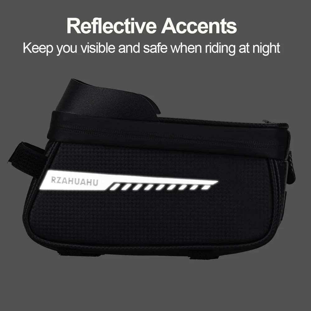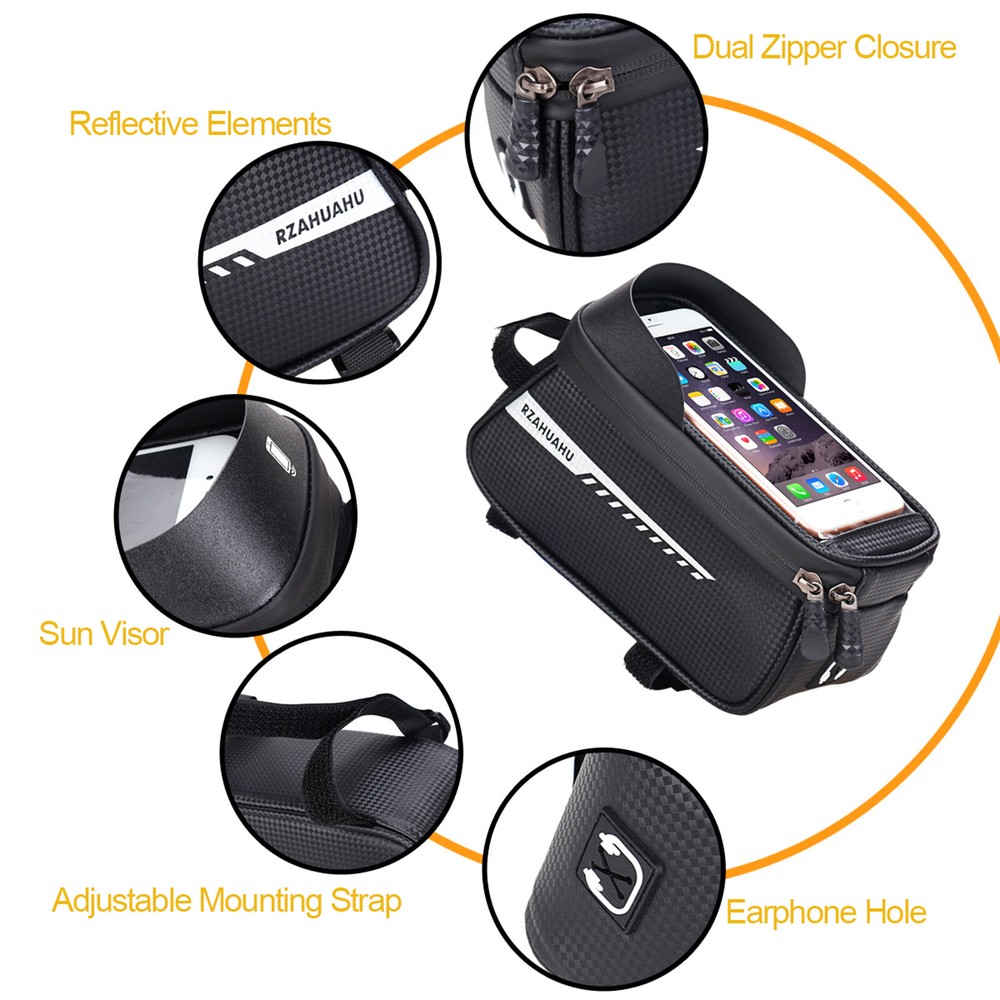 Feature: 1. Durably made with PU leather material, waterproof and easy to clean. 2. Touchscreen phone case helps you use cellphone easily. 3. Sun visor designed for easy reading in sunny days. Specification: This top tube bag is made of PU material and sealed zipper closure to protect your items from rain drops. It features a touchscreen phone case, sun visor, earphone port, reflective elements and many more highlights to make the bag a perfect choice for those who love Cycle. Features: Durably made with PU leather material, waterproof and easy to clean. Touchscreen phone case helps you use cellphone easily. Sun visor designed for easy reading in sunny days. Earphone port allows you to enjoy music while riding the . Sealed double zipper closure stops water from seeping into the bag. High-visibility reflective accents for safer riding at night. Adjustable adhesive mounting straps for easy installation on your . Enough inside room for phone, energy gel, repair kits, keys, wallet, etc. Specifications: Material: PU leather Dimension: Approx. 21 * 9 * 10.5cm / 8.3 * 3.5 * 4.1in Weight: Approx. 175g / 6.2oz Package List: 1 * Top Tube Bag Package List: 1 * Top Tube Bag